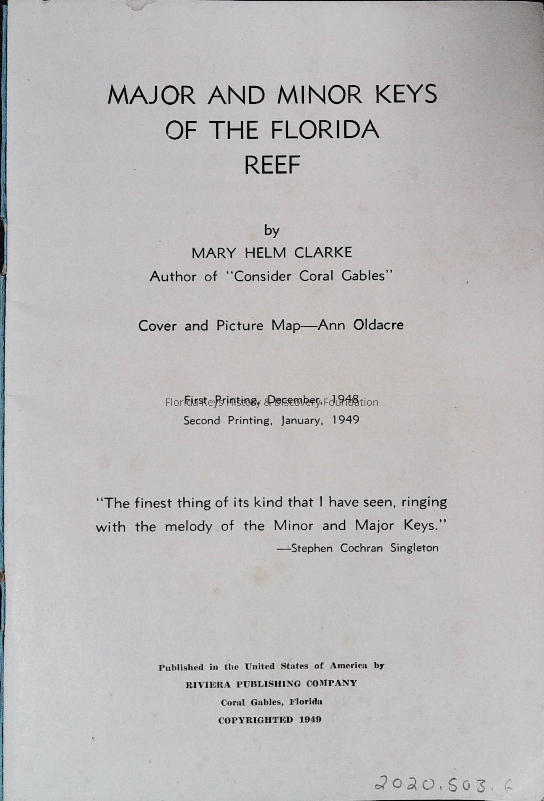 Major and Minor Keys of the Florida ReefEntry/Object ID