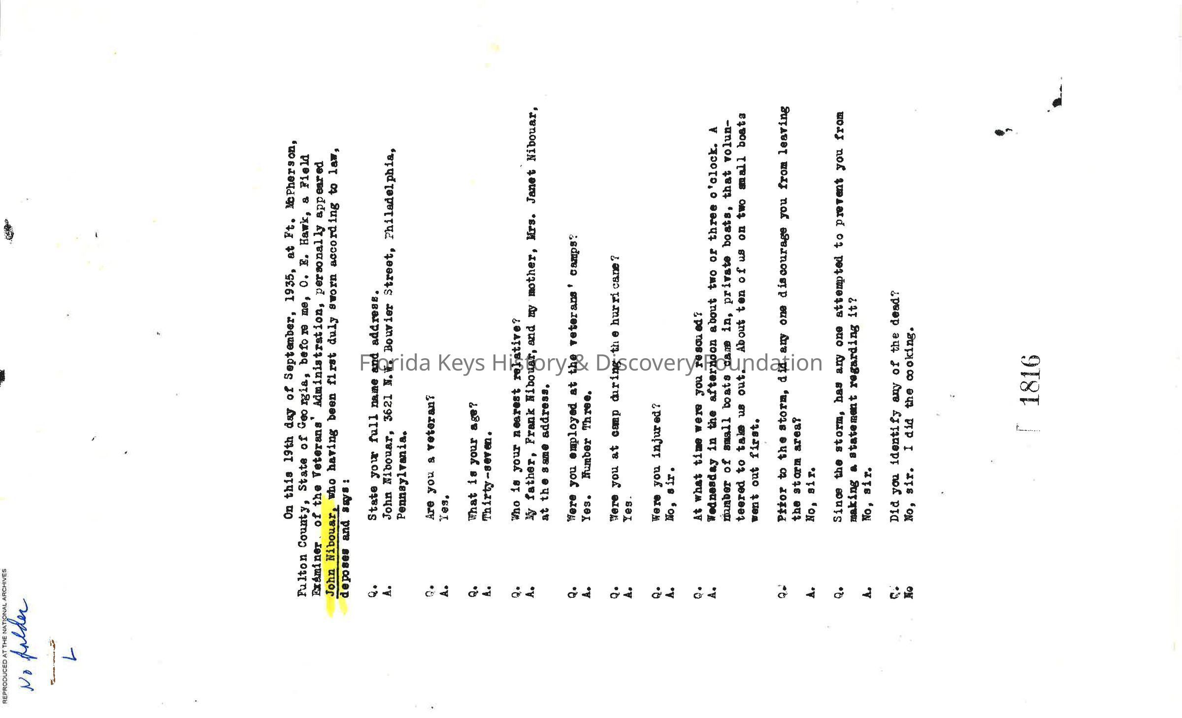 Sept. 19, 1935, "On this 19th day of September, 1935, at Ft. McPherson, Fulton County, State of Georgia, before me, O. E. Hawk, a Field Examiner of the Veterans' Administration, personally appeared John Nibouar, who having been first duly sworn according to law, deposes and says..."Creator
