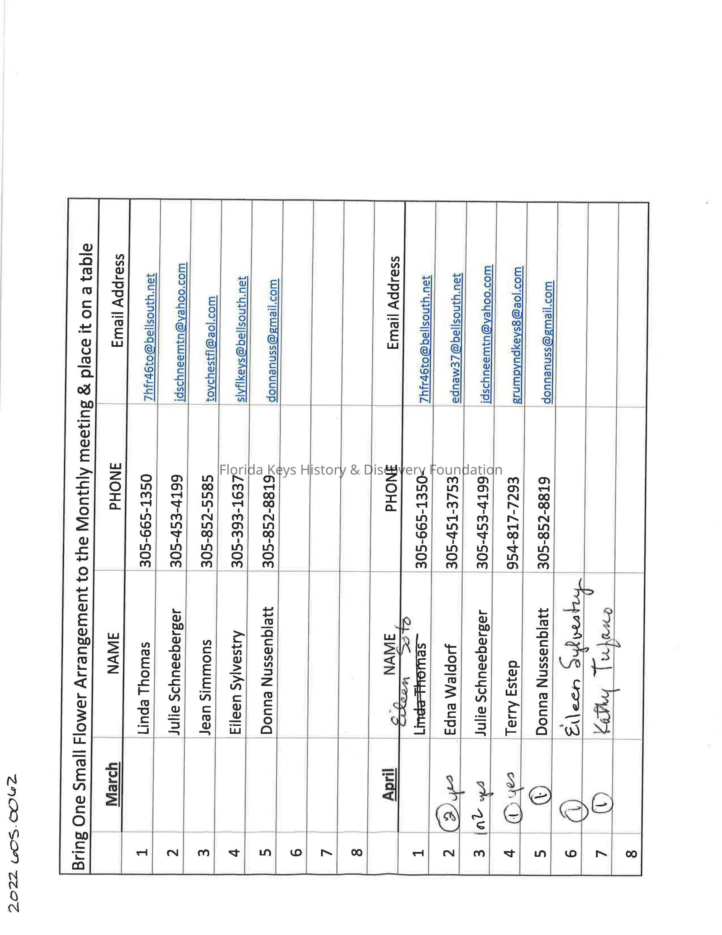 Sign Up Sheet for Flower Arrangements and Handwritten NotesEntry/Object ID