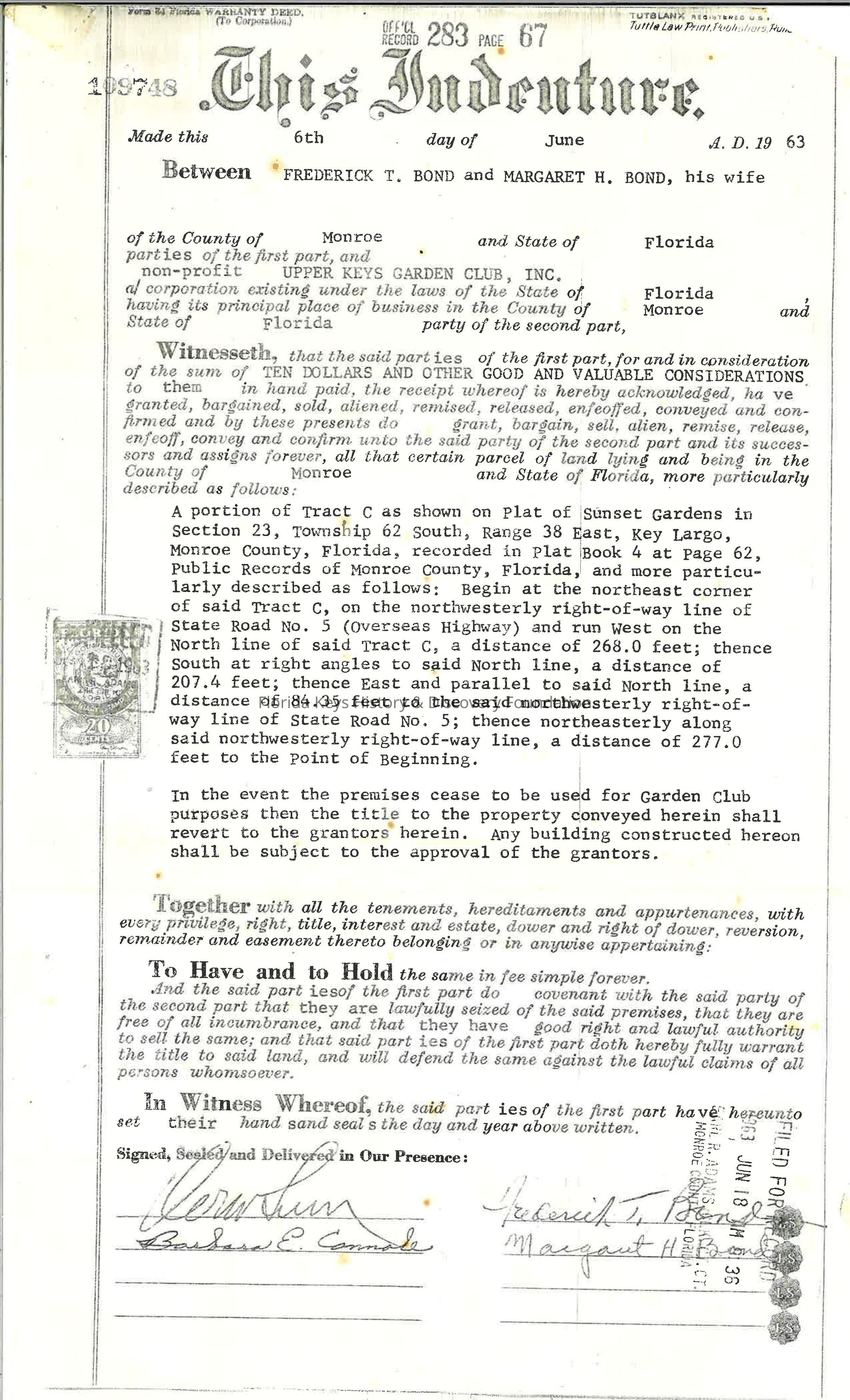 Garden Club of the Upper Keys, Margaret Bond, Frederick BondCreated By