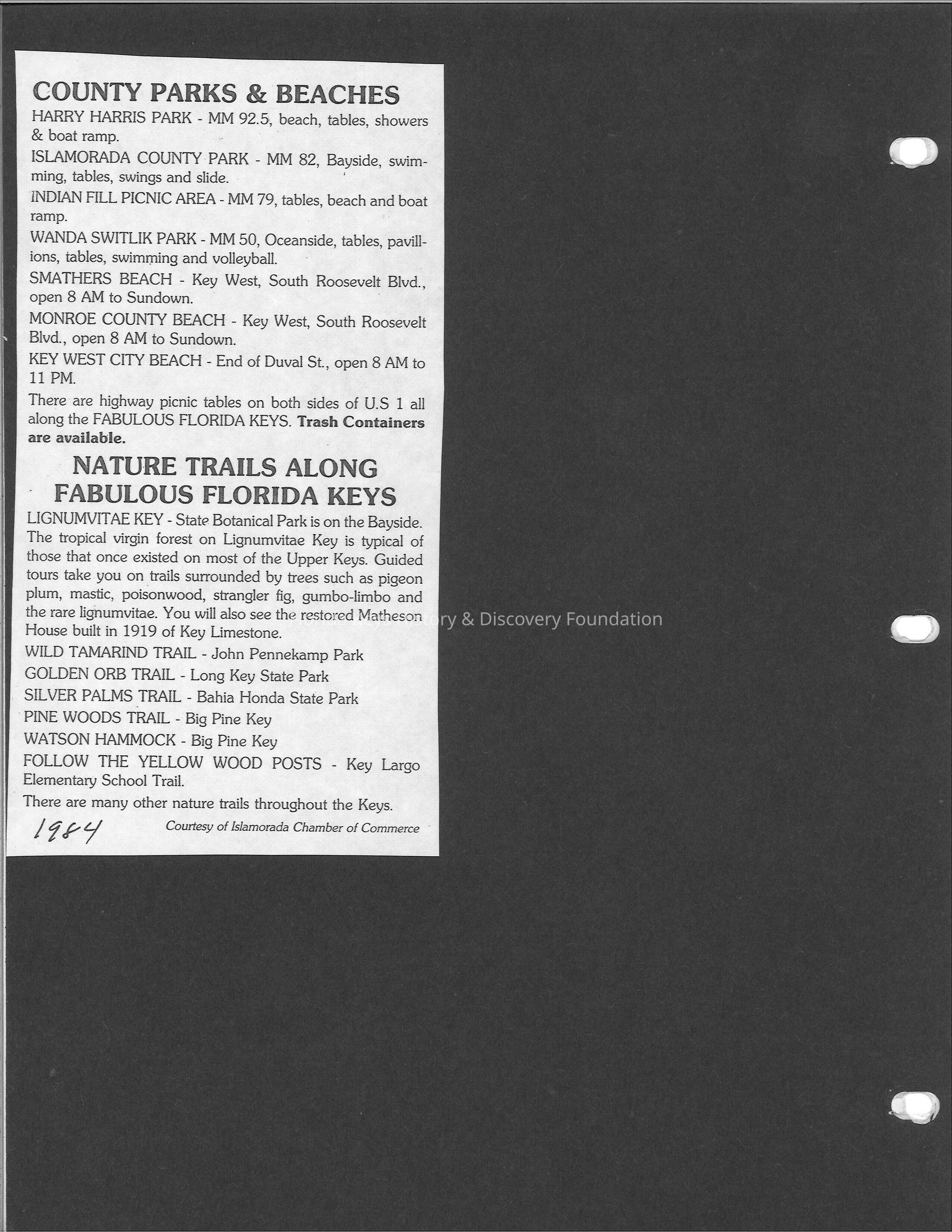Florida Keys Parks ScrapbookEntry/Object ID
