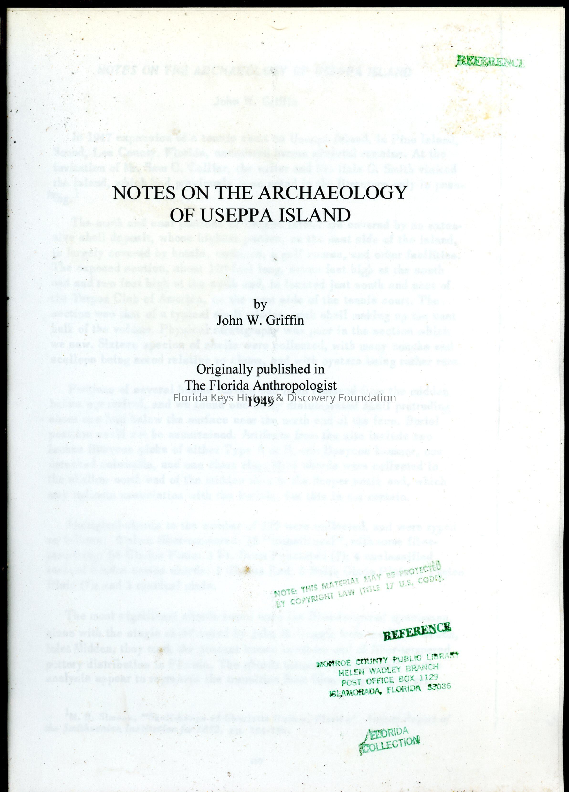 Notes on the Archaeology of Useppa IslandEntry/Object ID