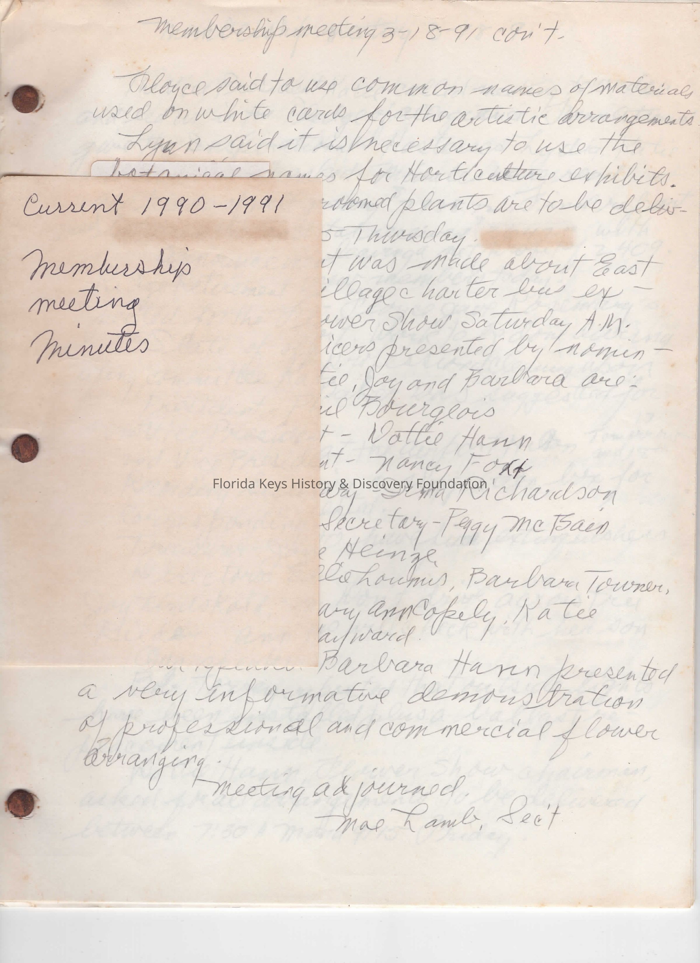 Membership Meeting Minutes 1990-1991Entry/Object ID