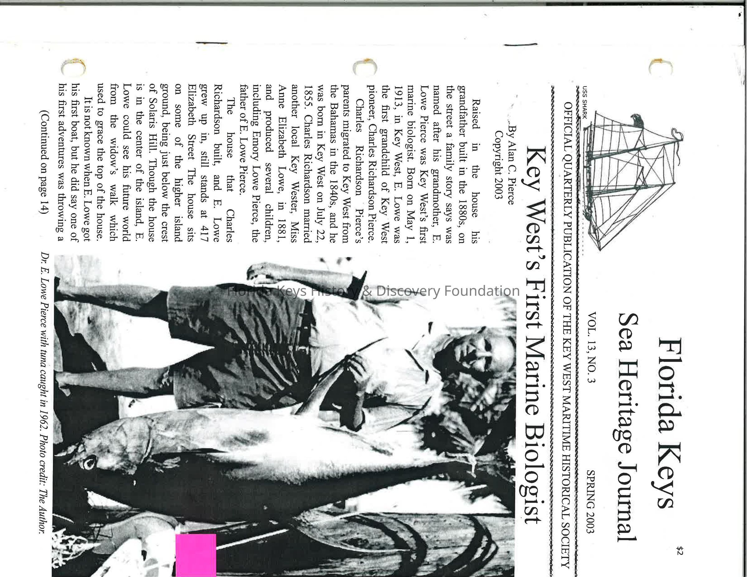 Florida Keys Sea Heritage Journal, Volume 13, Number 3, Spring 2003Description
