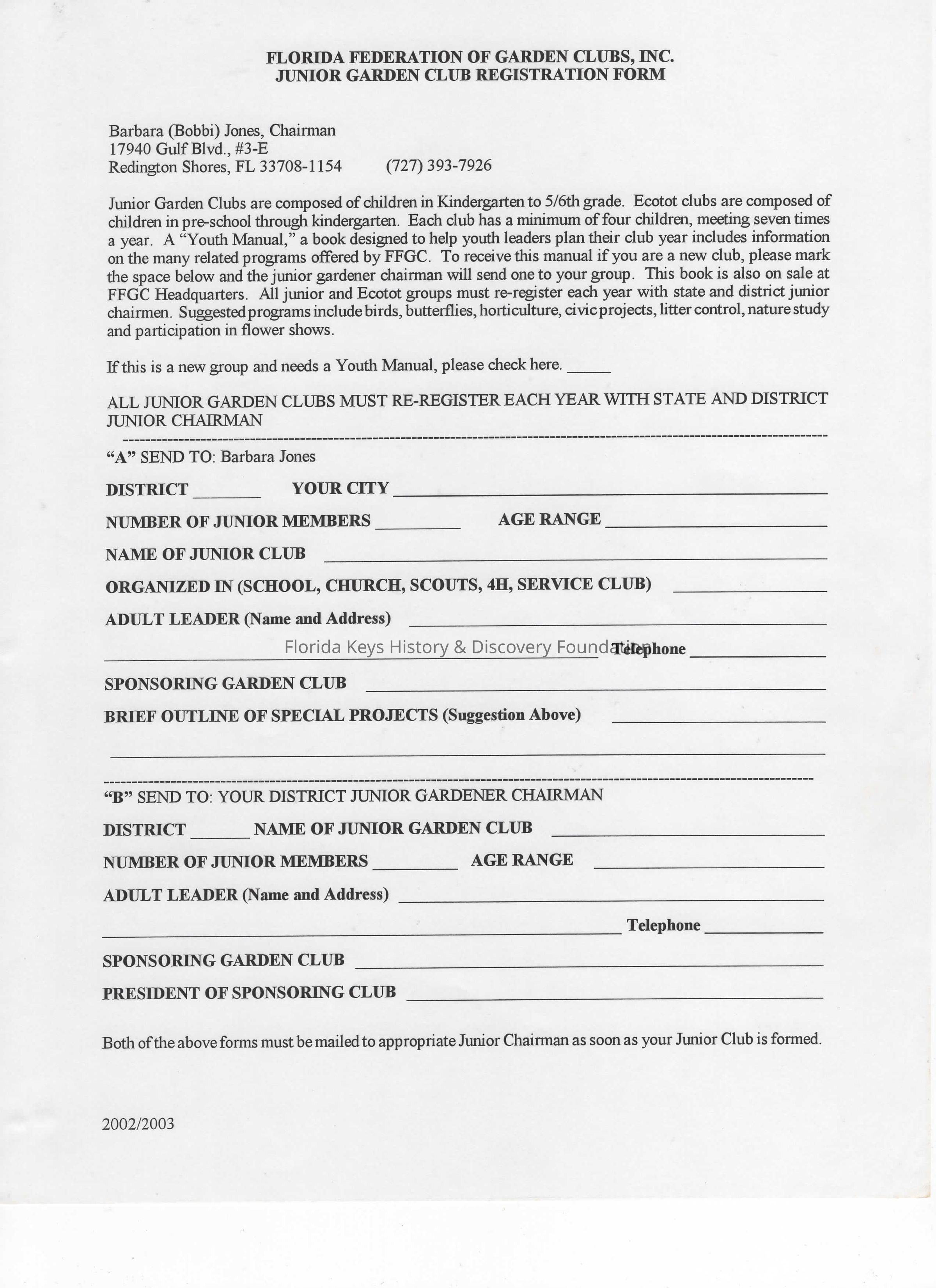 This is the blank application for a Junior Garden Club Registration Form from the Florida Federation of Garden ClubsCollection