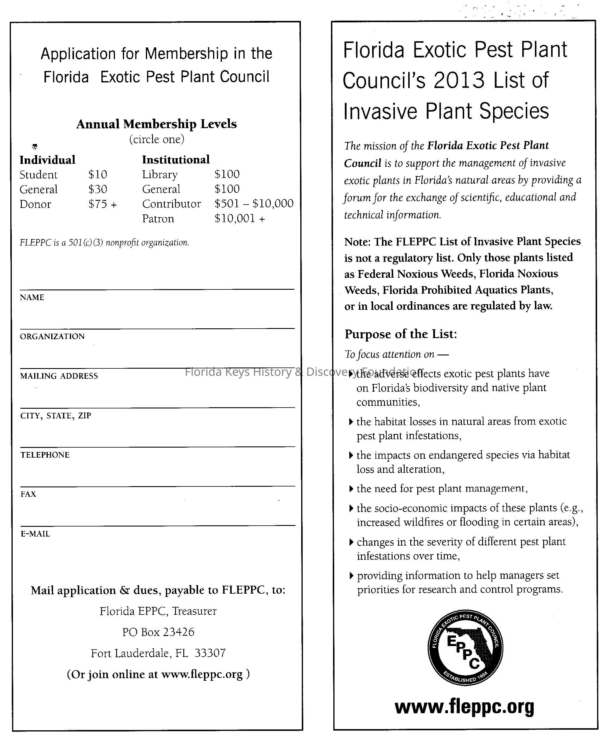 Florida Exotic Pest Plant Council 2013 List of Invasive SpeciesEntry/Object ID