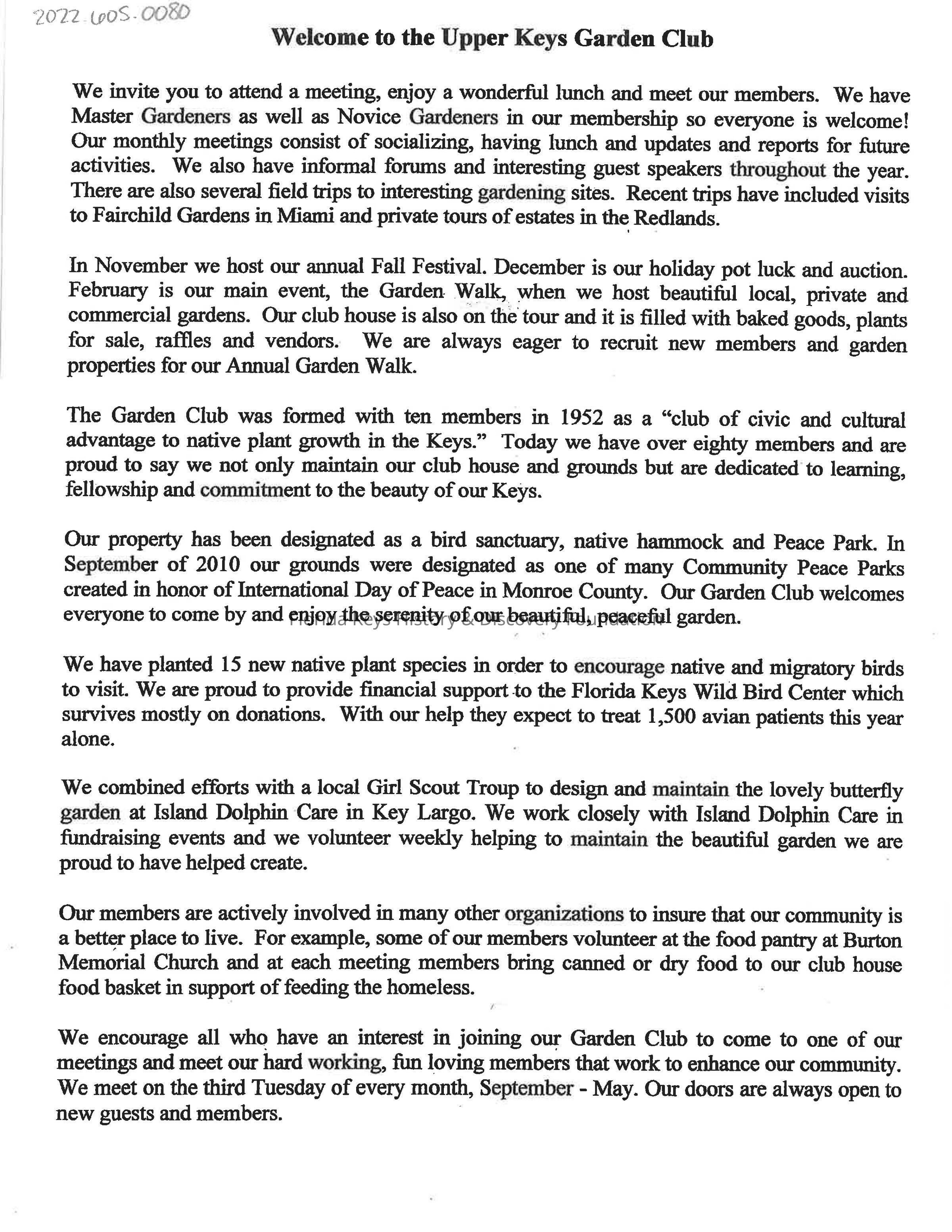 "Welcome to the Upper Keys Garden Club"Entry/Object ID
