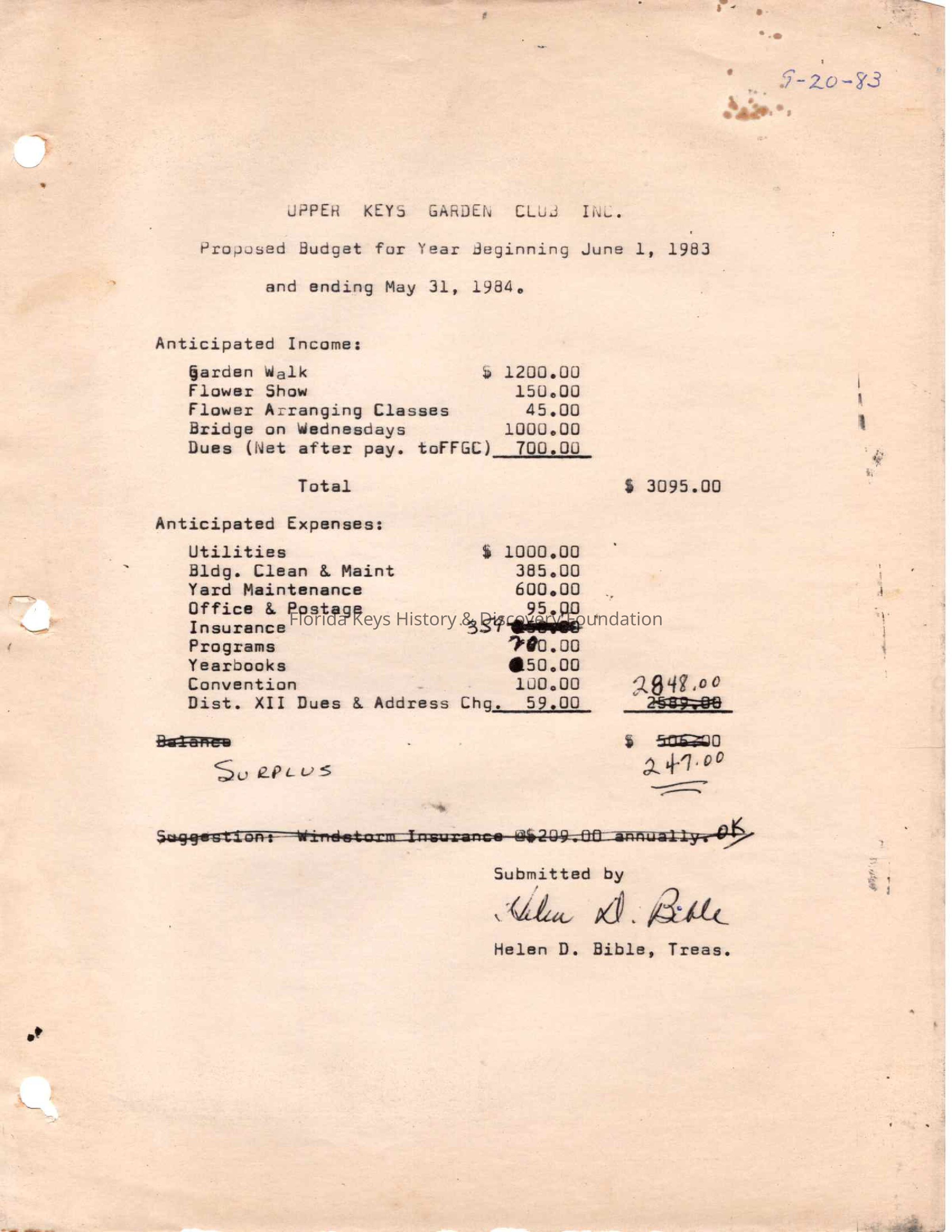 This is the proposed budget for the 1983-1984 GCUK calendar year.Collection