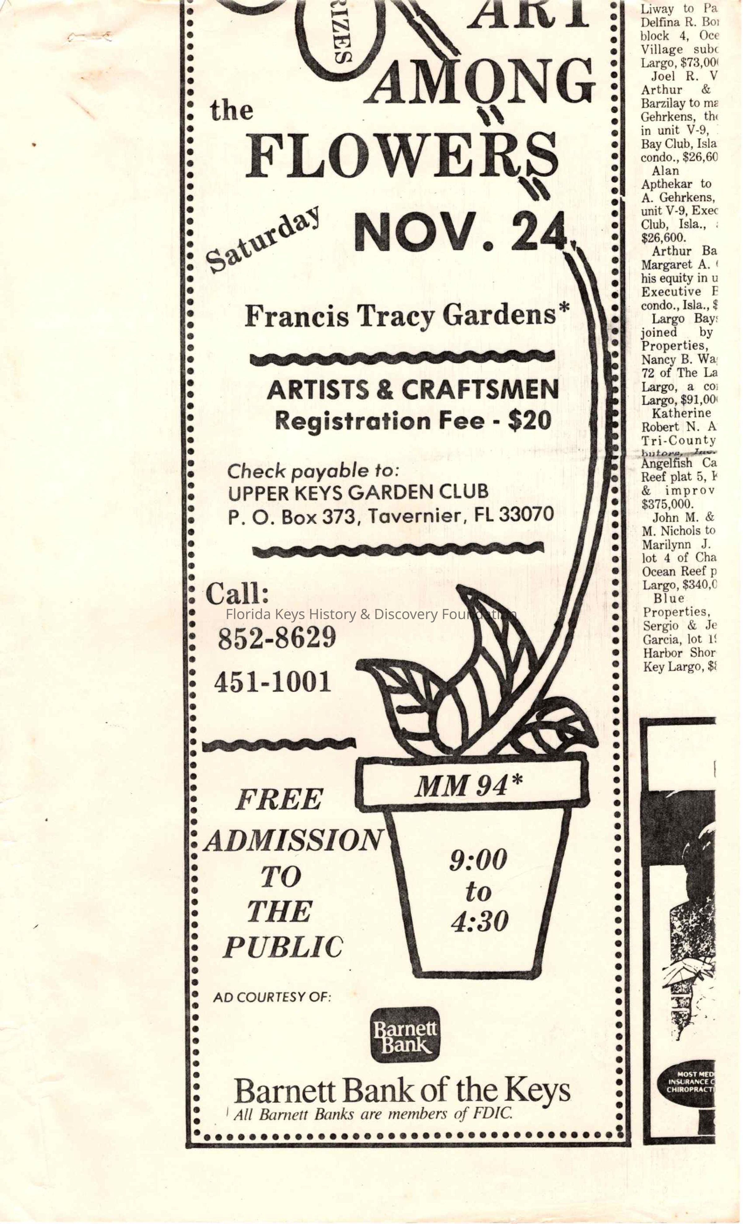 1980s, 1984, Francis Tracy Garden Center, Tavernier, Art Among Flowers, Newspaper, GCUK, Art Show, Arts and CraftsScope and Content