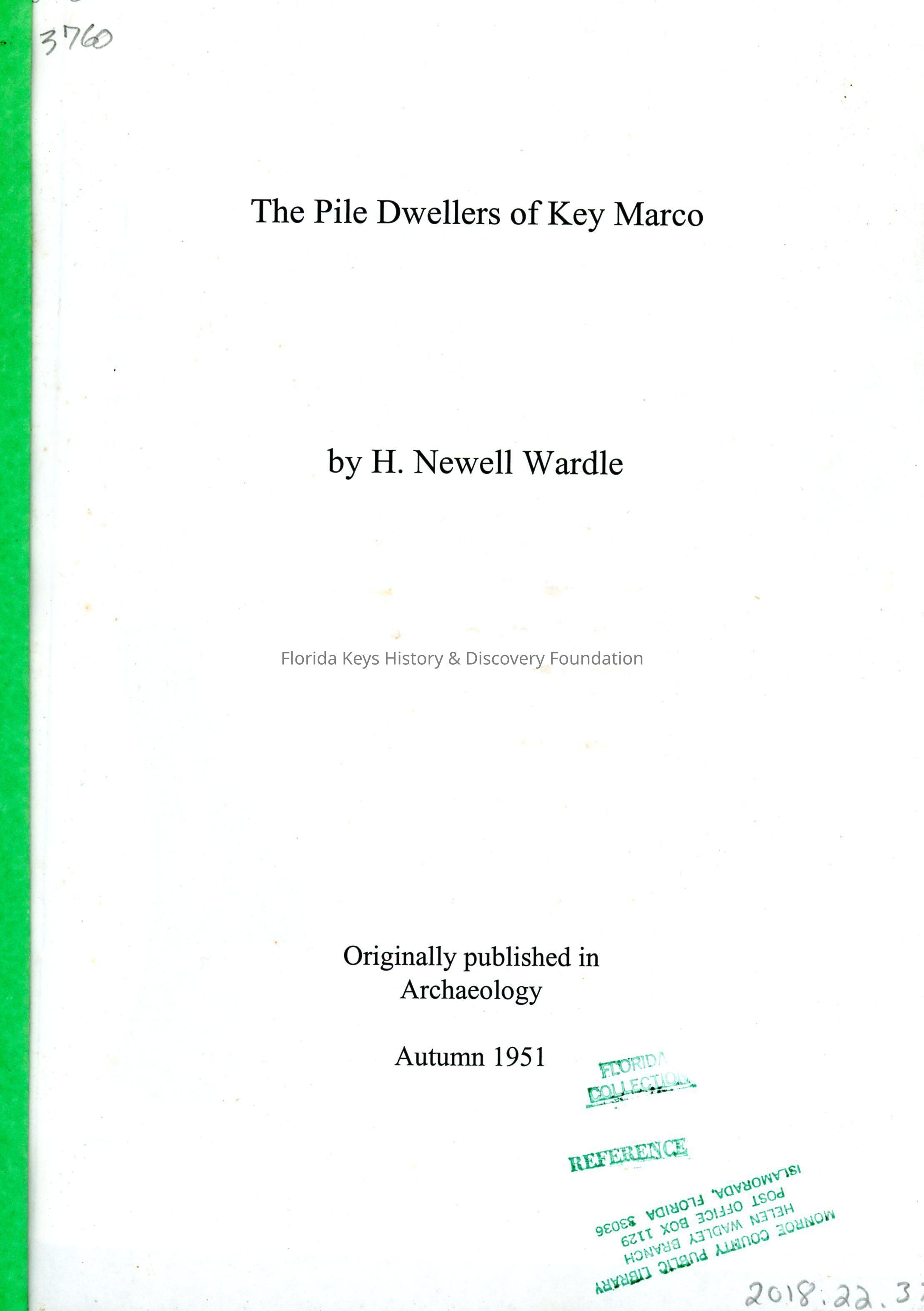 The Pile Dwellers of Key MarcoEntry/Object ID