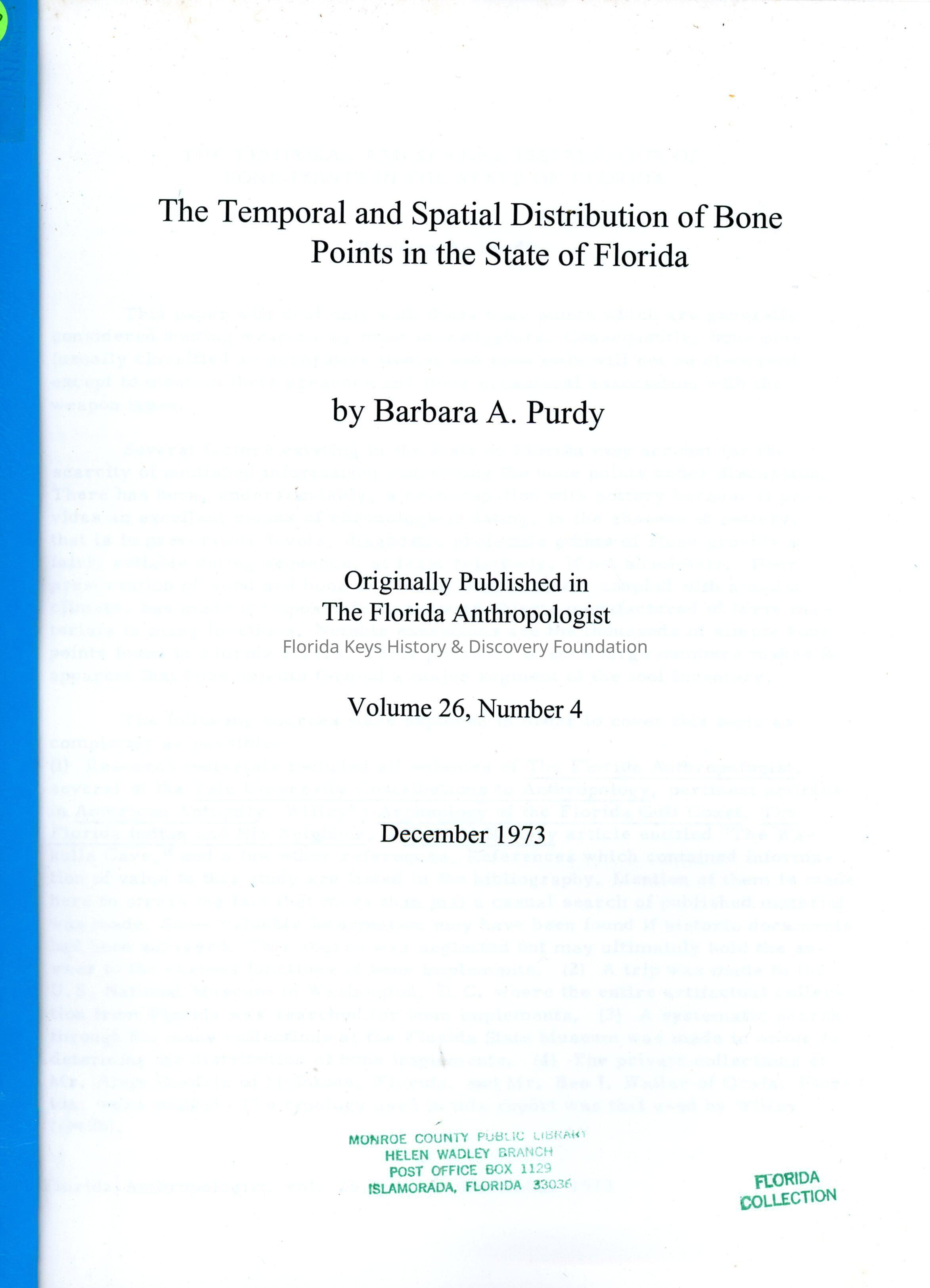 The Temporal and Spatial Distribution of Bone Points in the State of FloridaEntry/Object ID