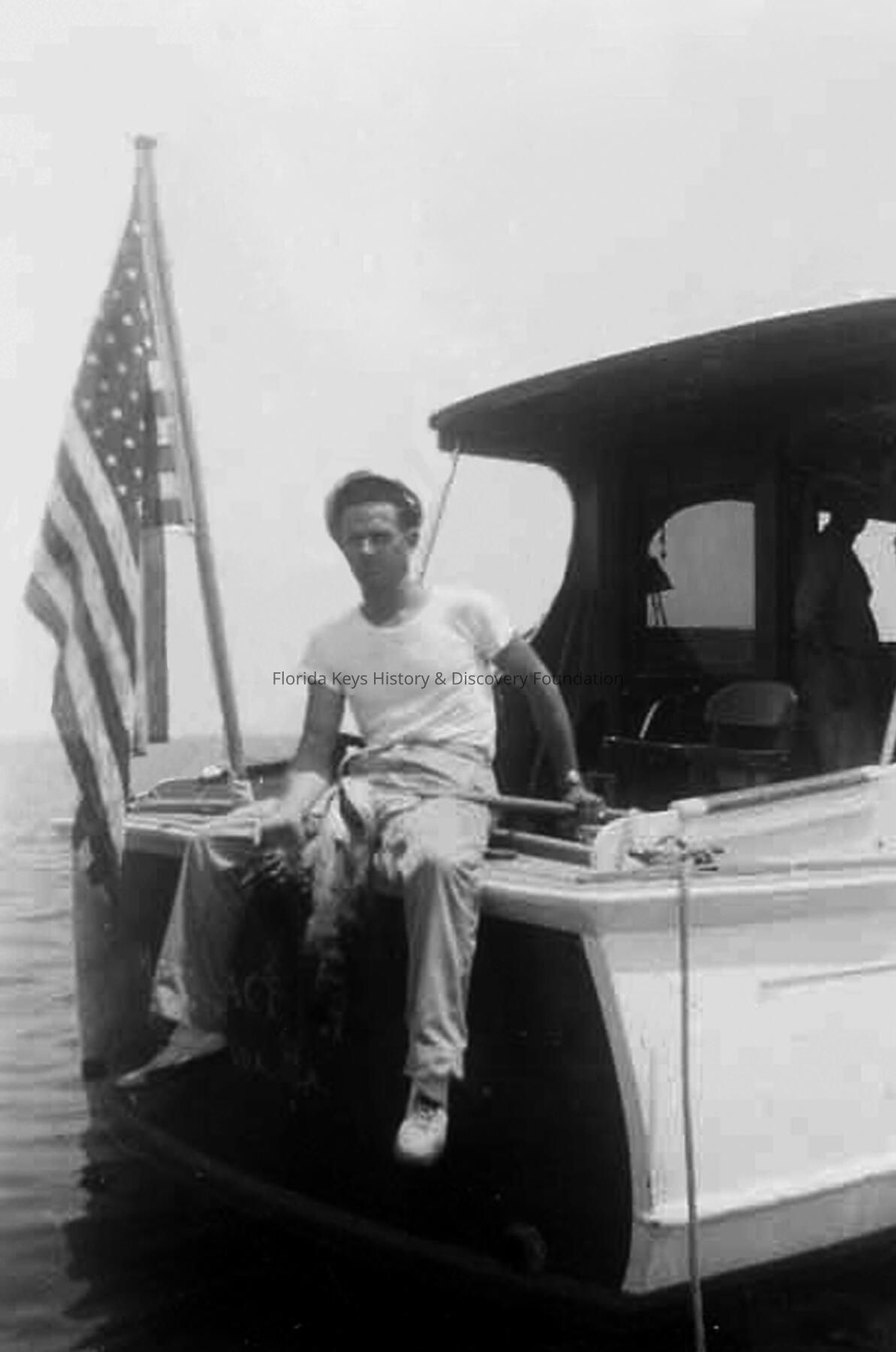 Bernard Russell abroad boat with flag wavingCollection
