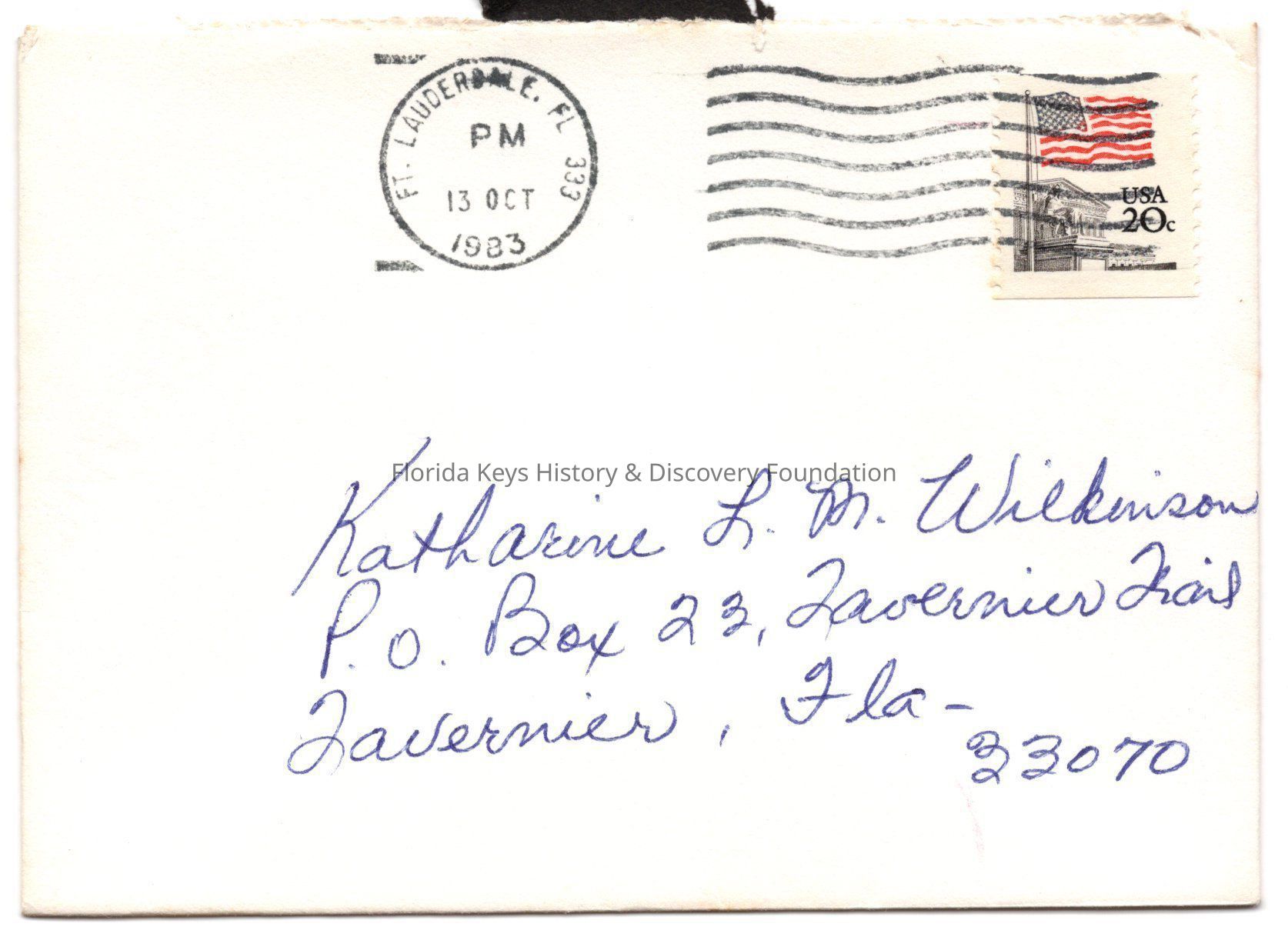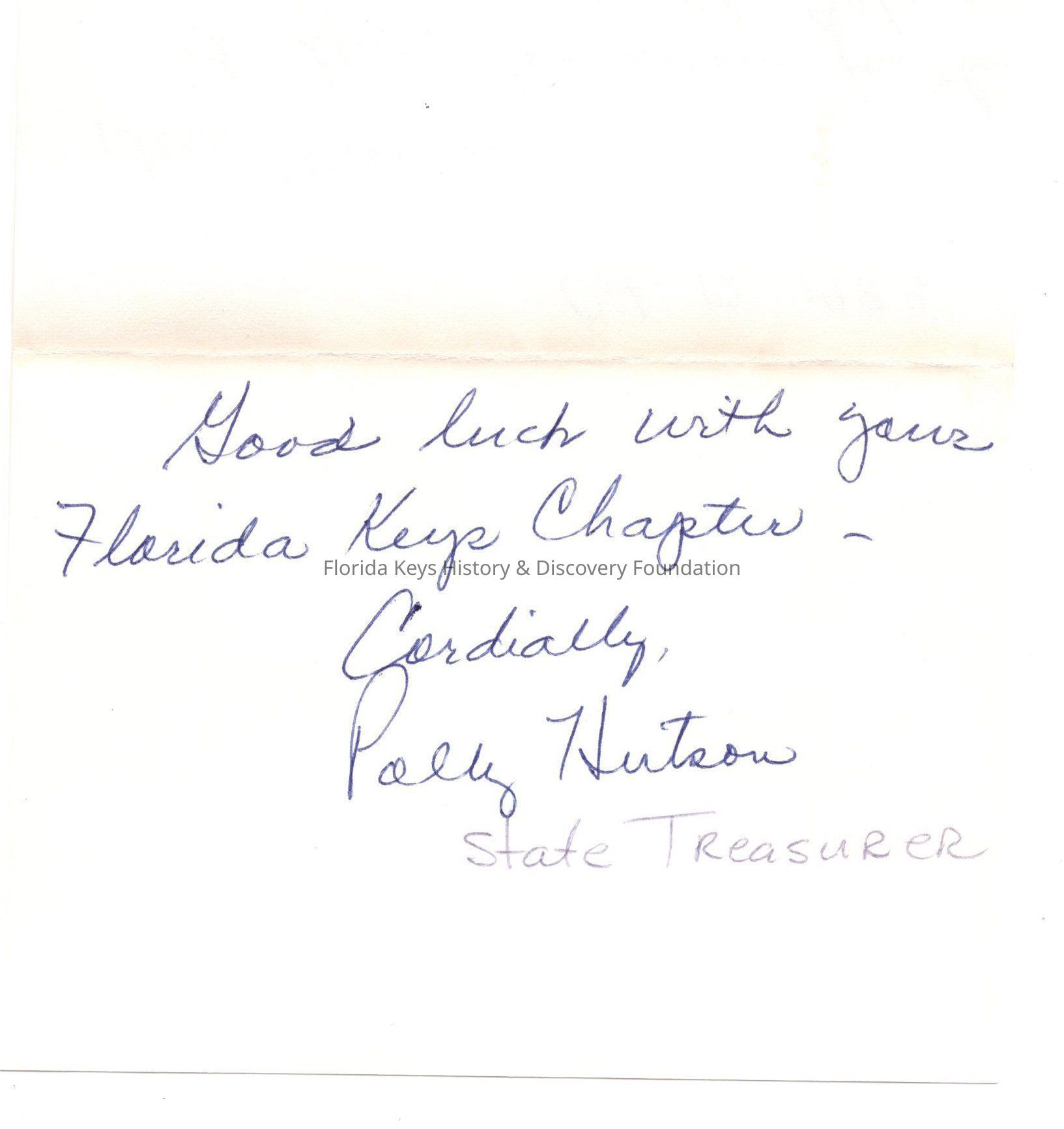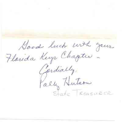 Letter to Katherine Wilkinson from Polly Hutson, State Treasurer, 1983Entry/Object ID