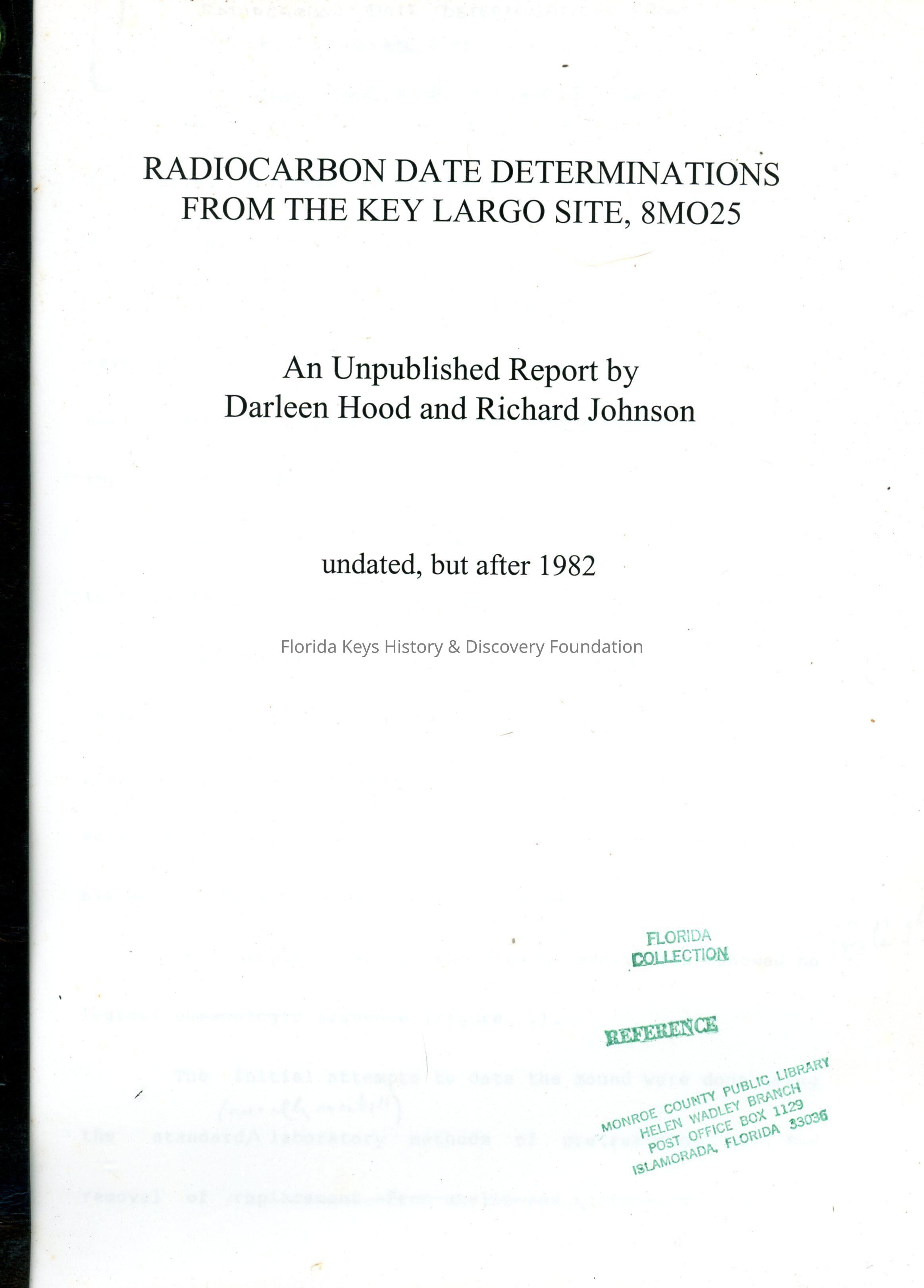 Radiocarbon Date Determinations From the Key Largo Site, 8MO26Entry/Object ID