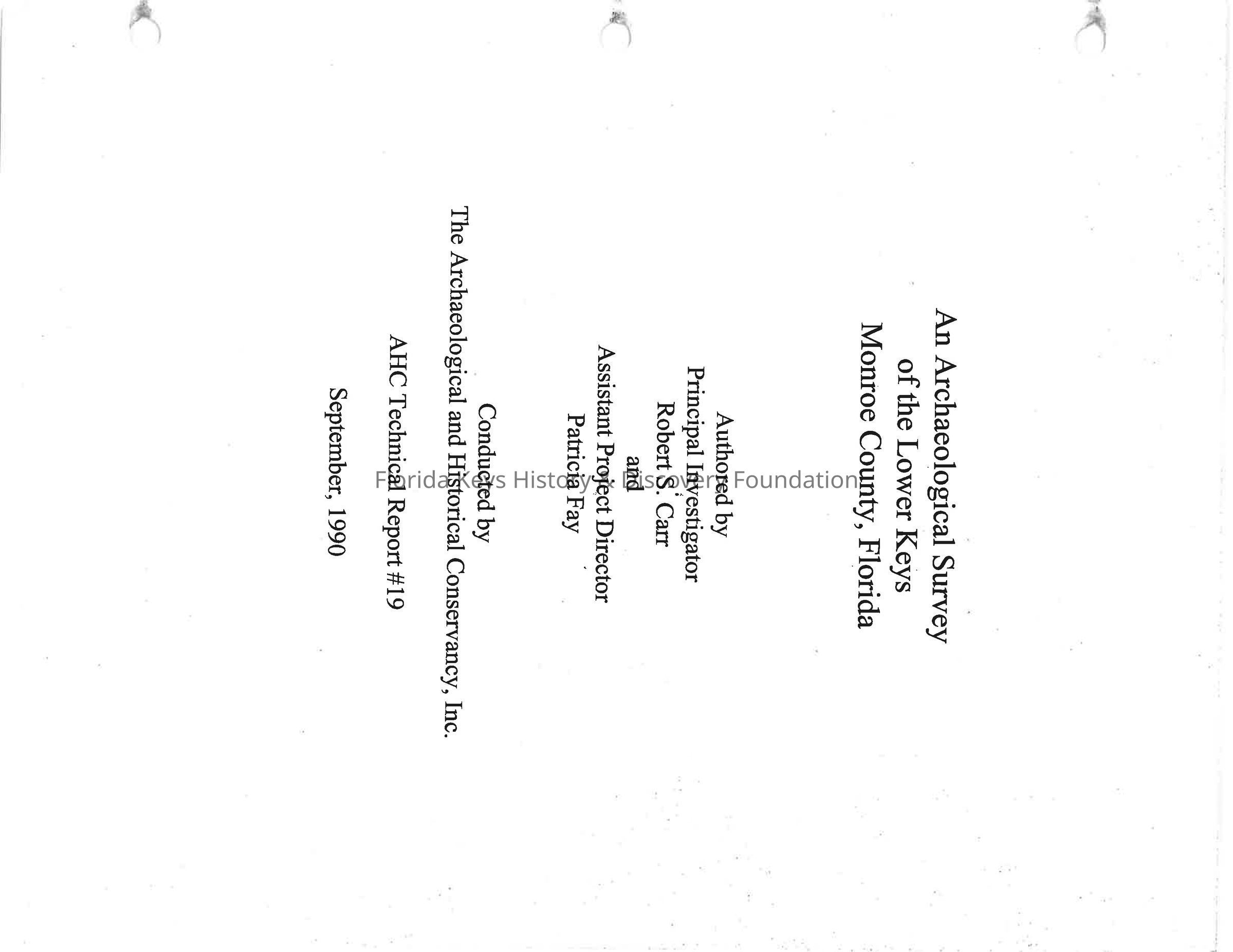 An Archaeological Survey of the Lower Keys Monroe County, FloridaEntry/Object ID