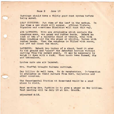 Meeting Minutes from June 10th, 1952. Meeting held at 2pm at Mrs. Evert Perkins home.Context