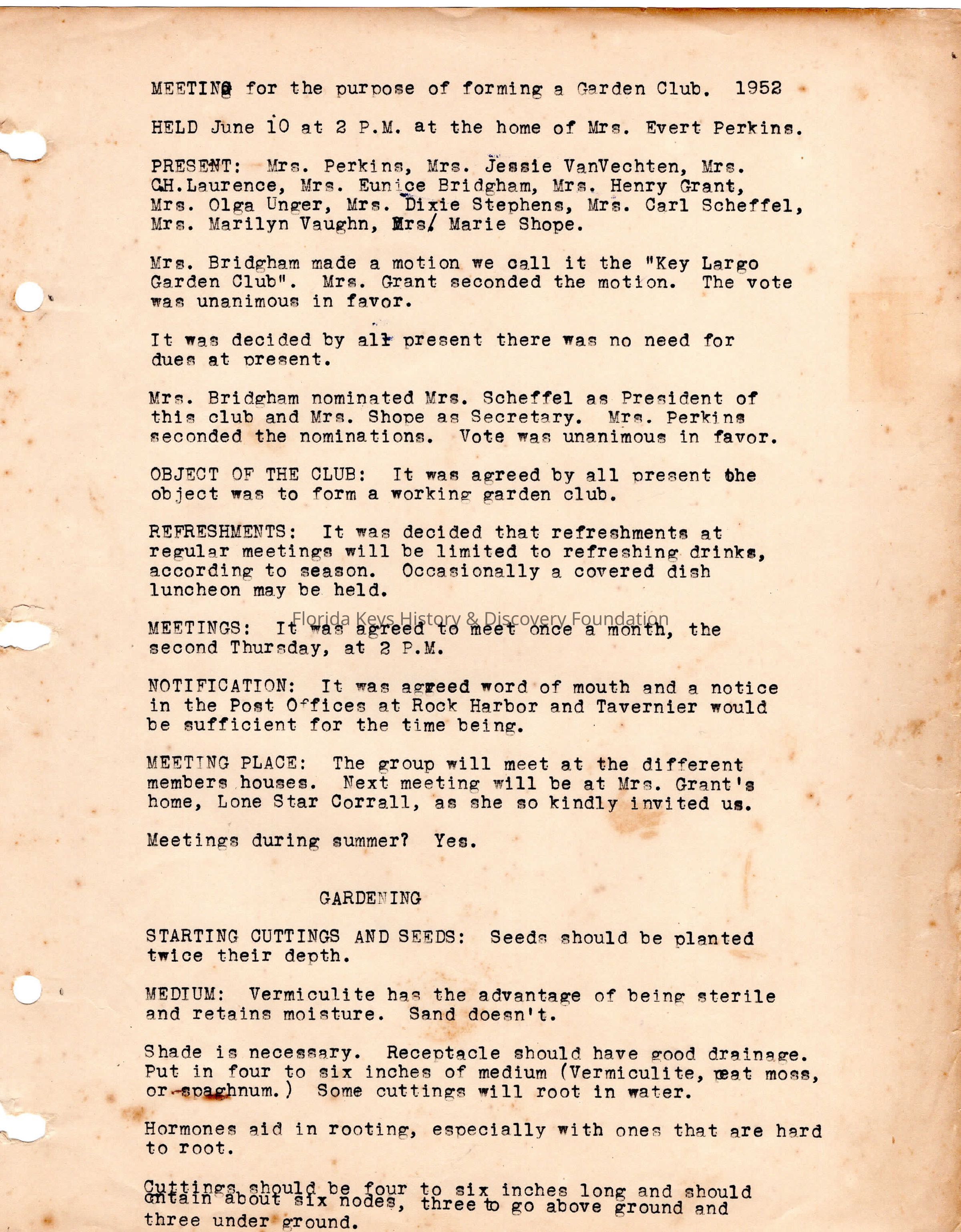 Purpose of the meeting was to form the Key Largo Garden Club.Collection