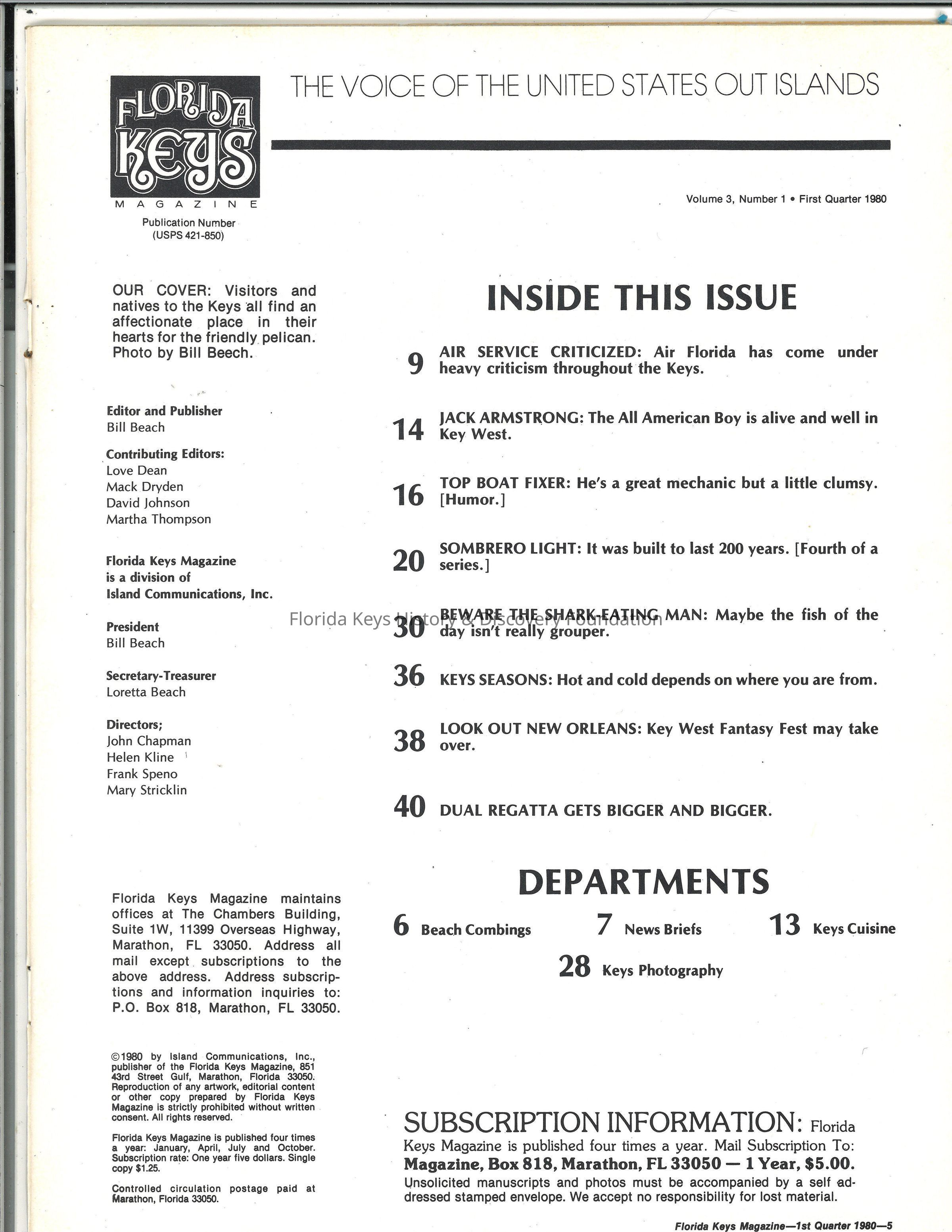 Florida Keys Magazine, First Quarter, 1980Entry/Object ID