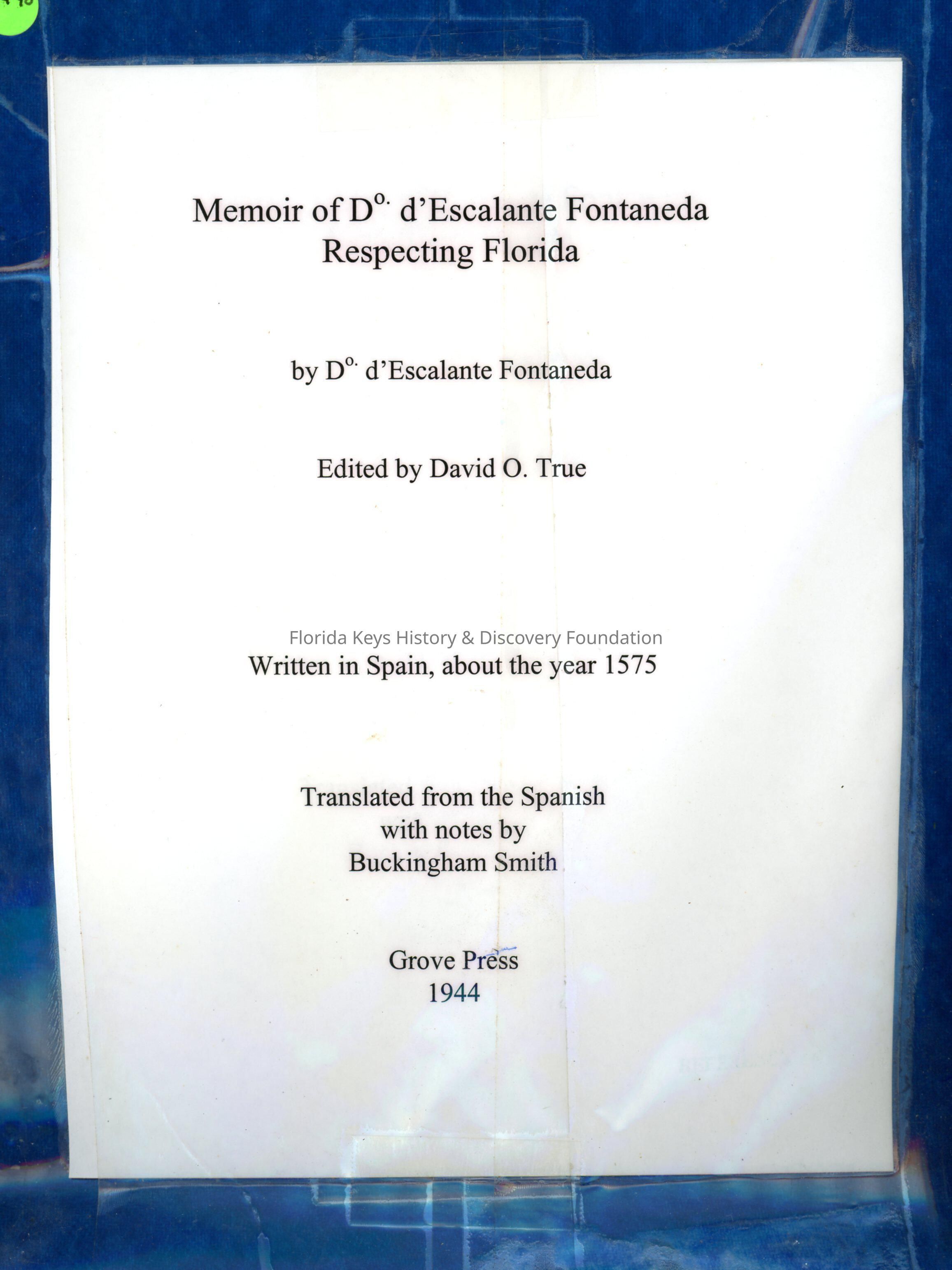 Memoir of D* d'Escalante Fontaneda Respecting FloridaEntry/Object ID
