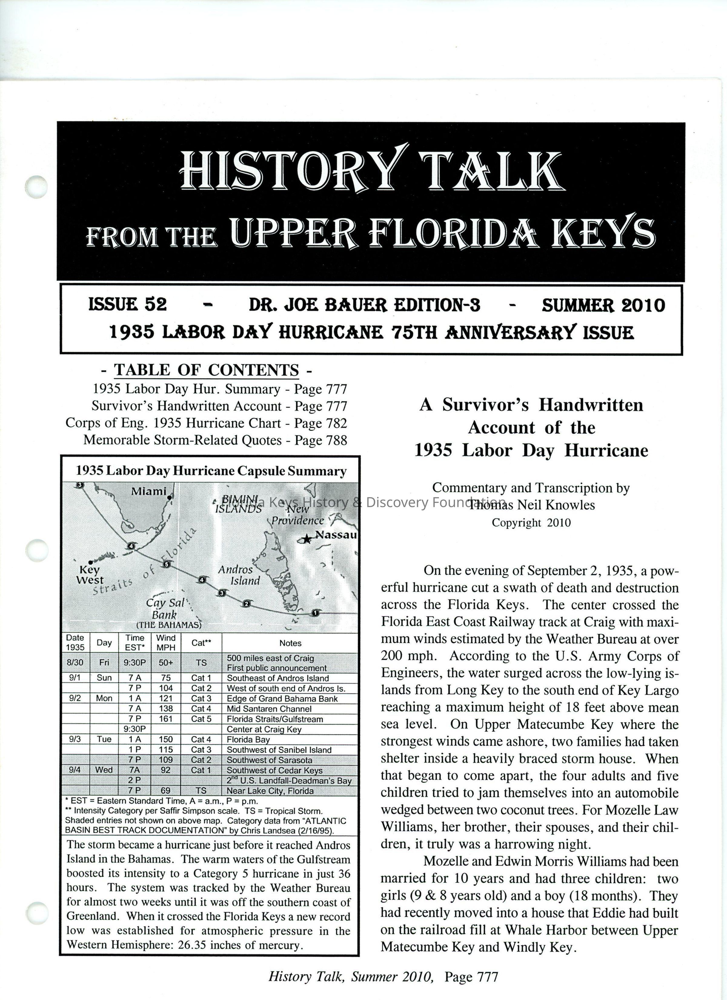 1935 Labor Day Hurricane 75th Anniversary IssueDescription