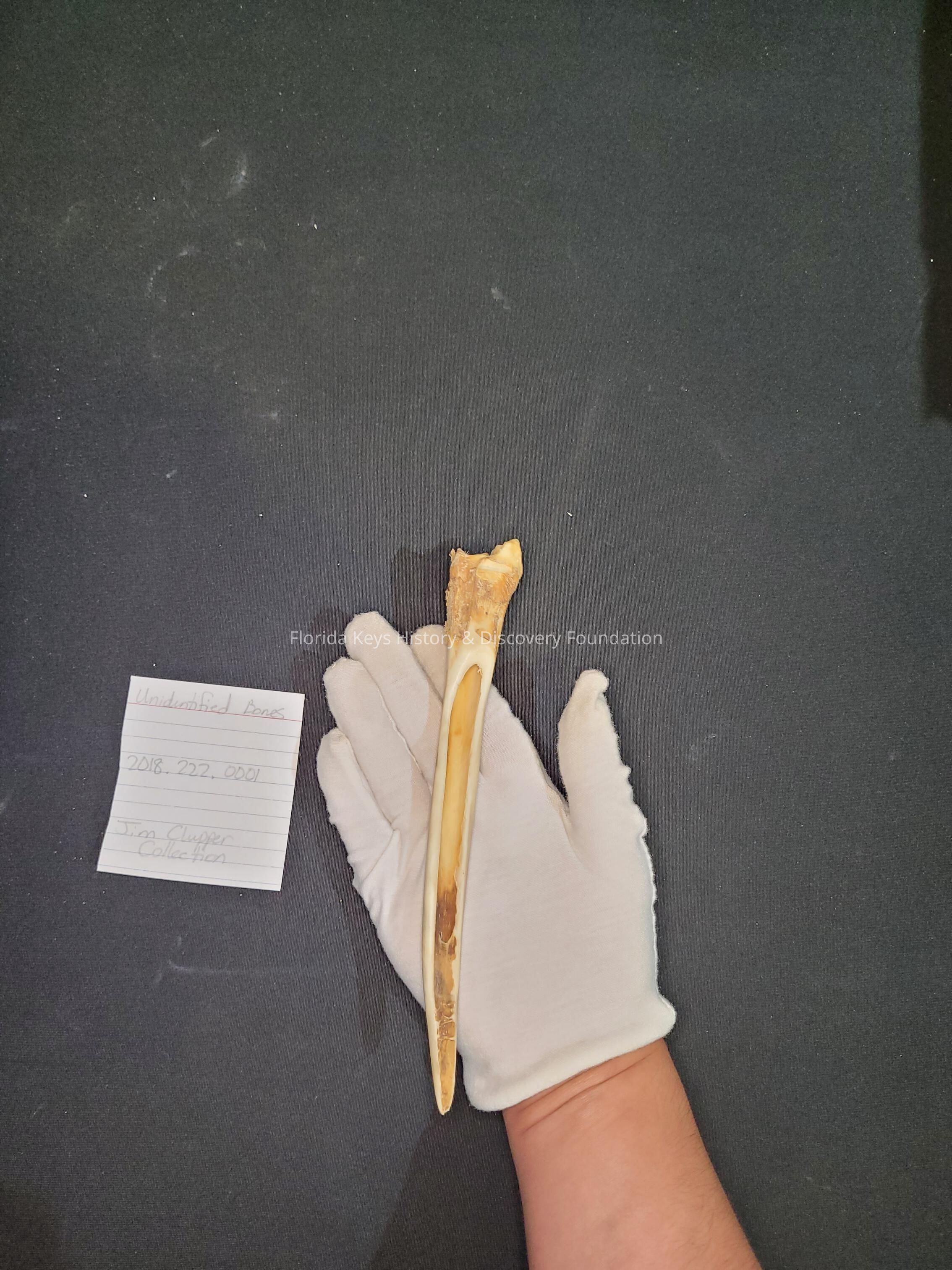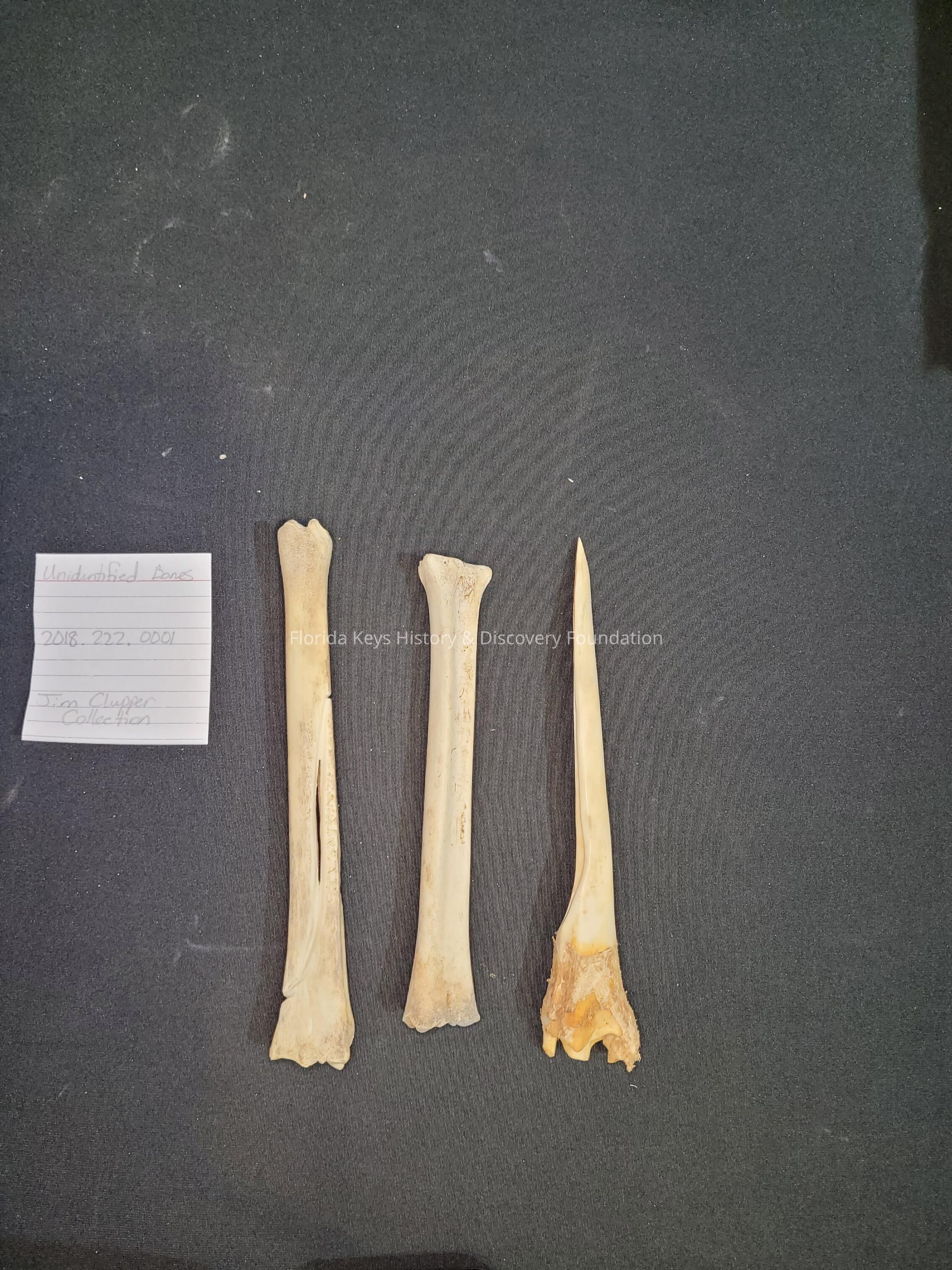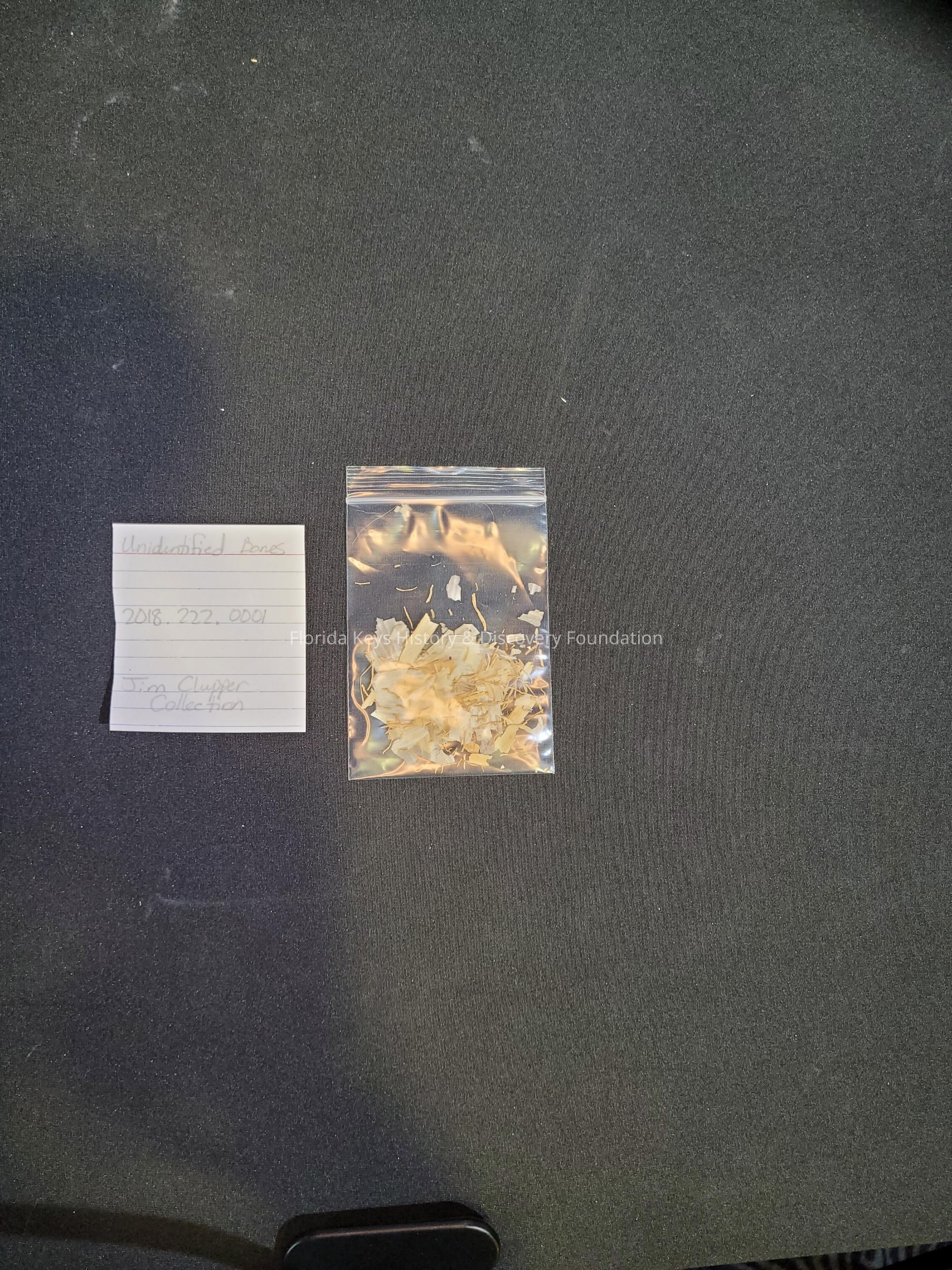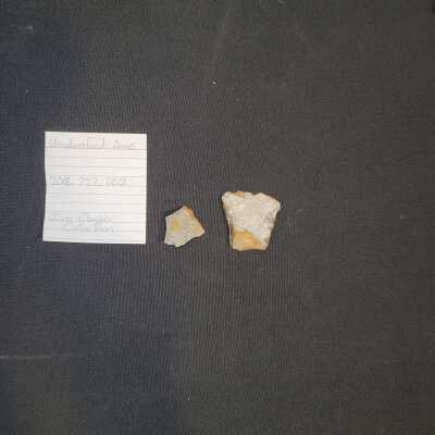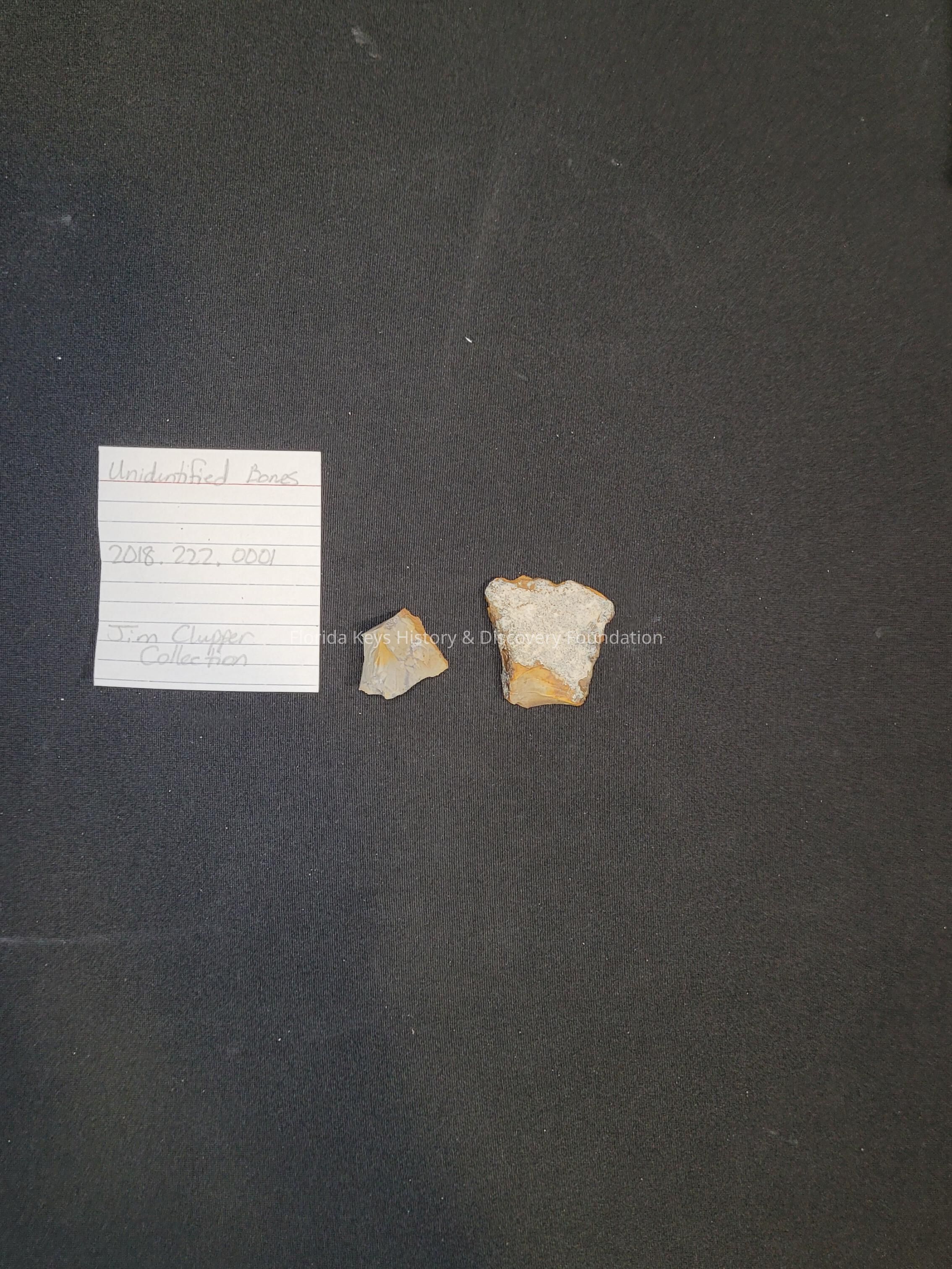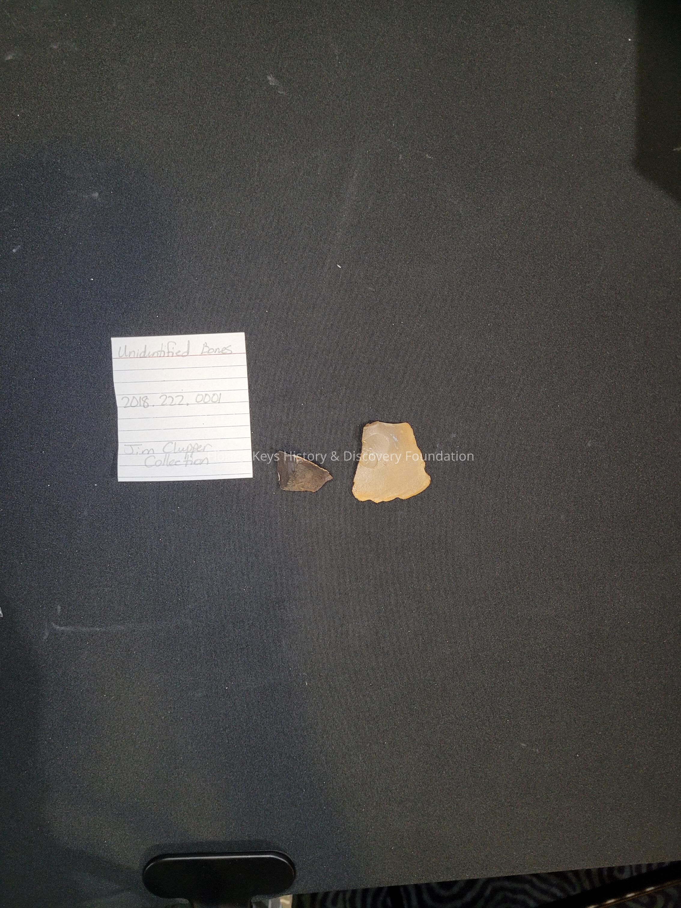 Three unidentified bones, two unidentified stones, 1 bag of unidentified flakes (onion?)Collection