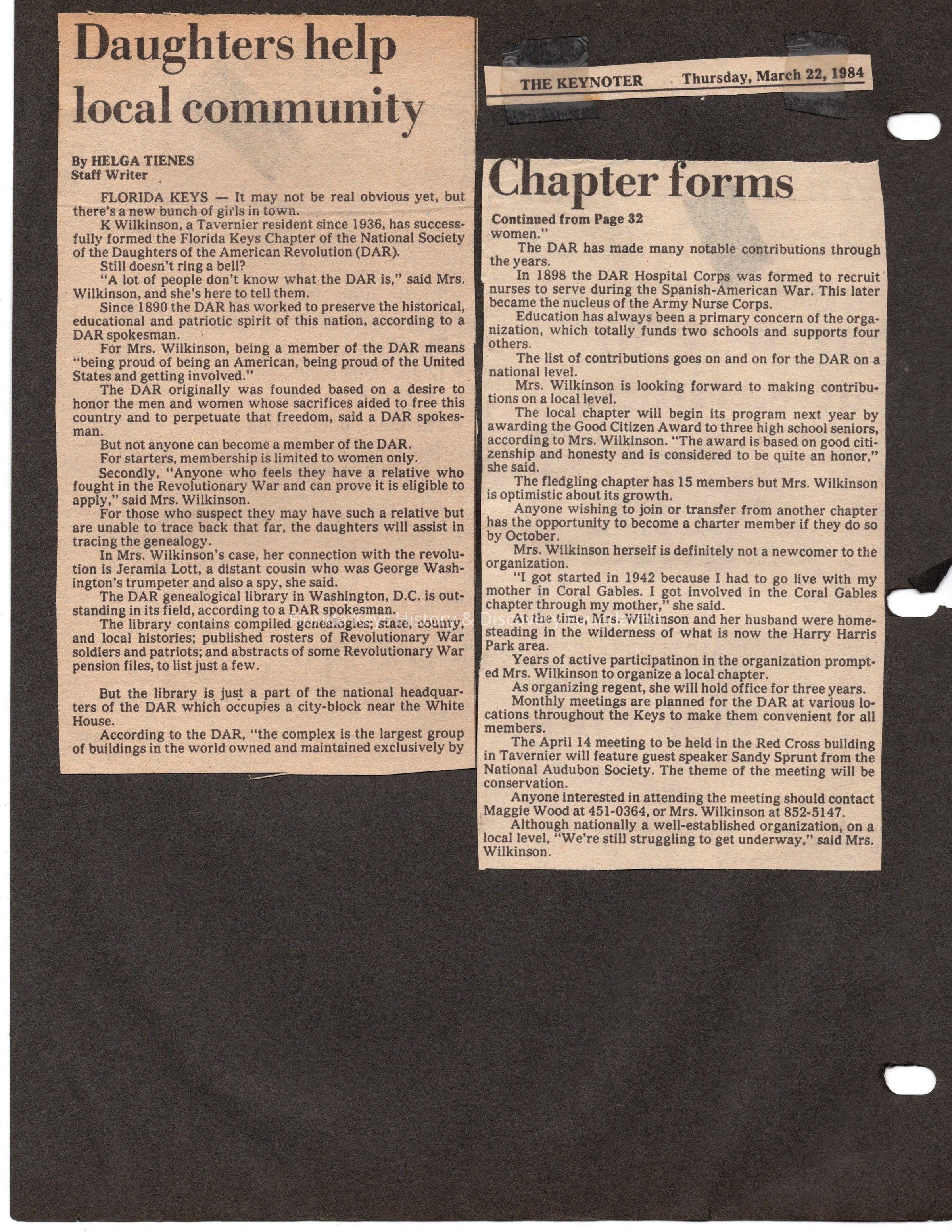 1984, Florida Keys Chapter, DAR Meeting, DAR, Organization MeetingScope and Content