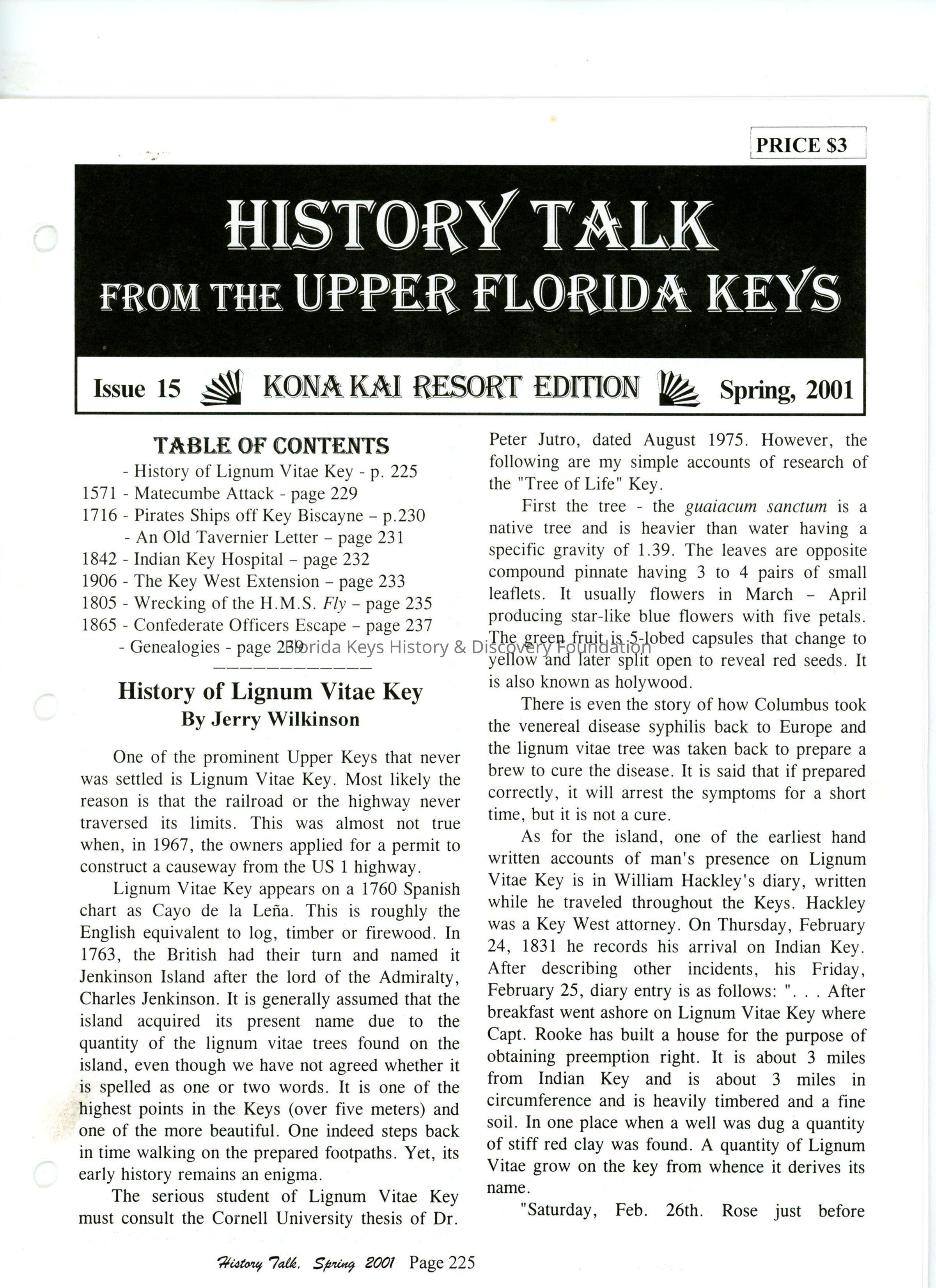 -History of Lignum Vitae Key- p. 225
