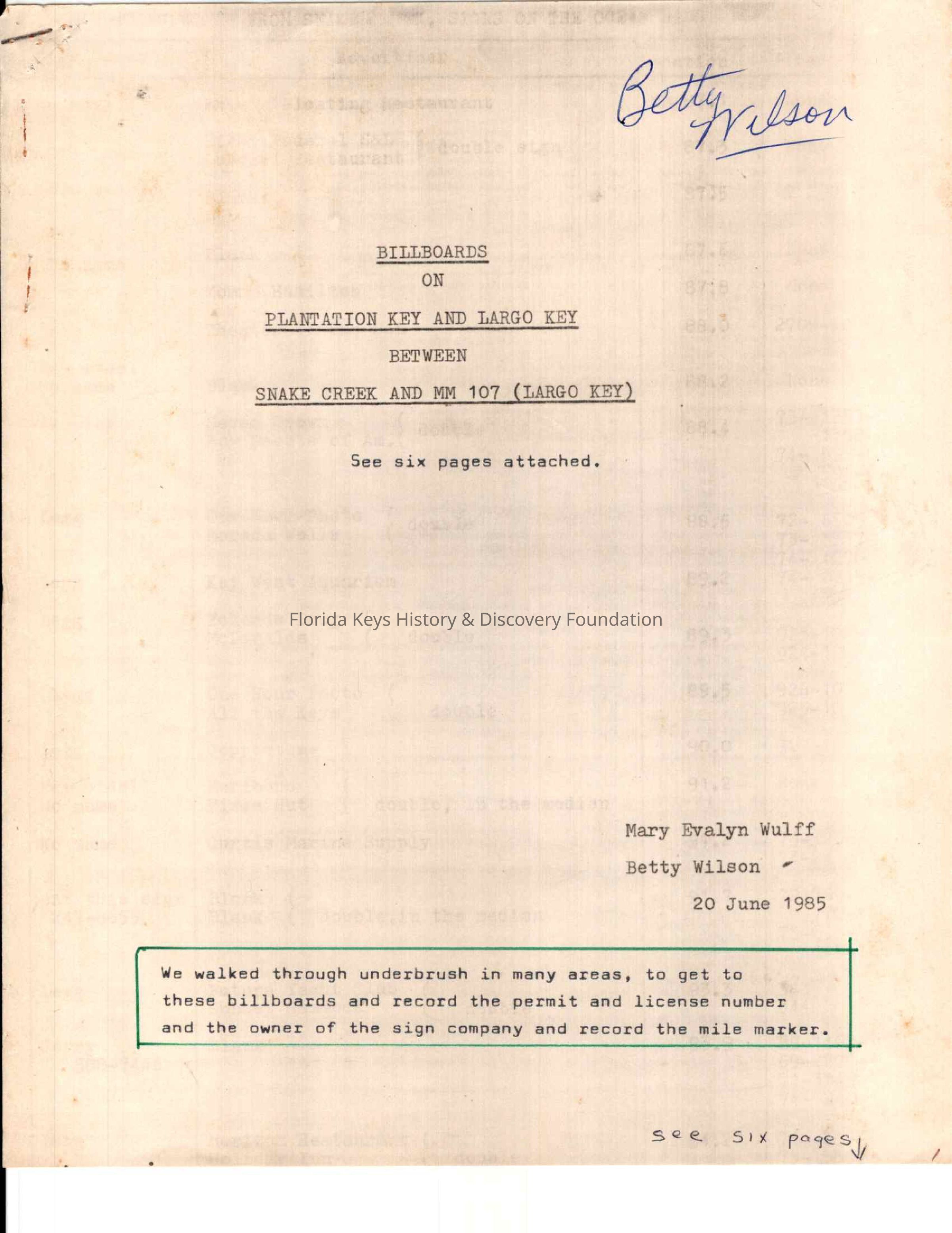 This is a survey of billboards in Plantation Key and Largo Key taken by members.Collection