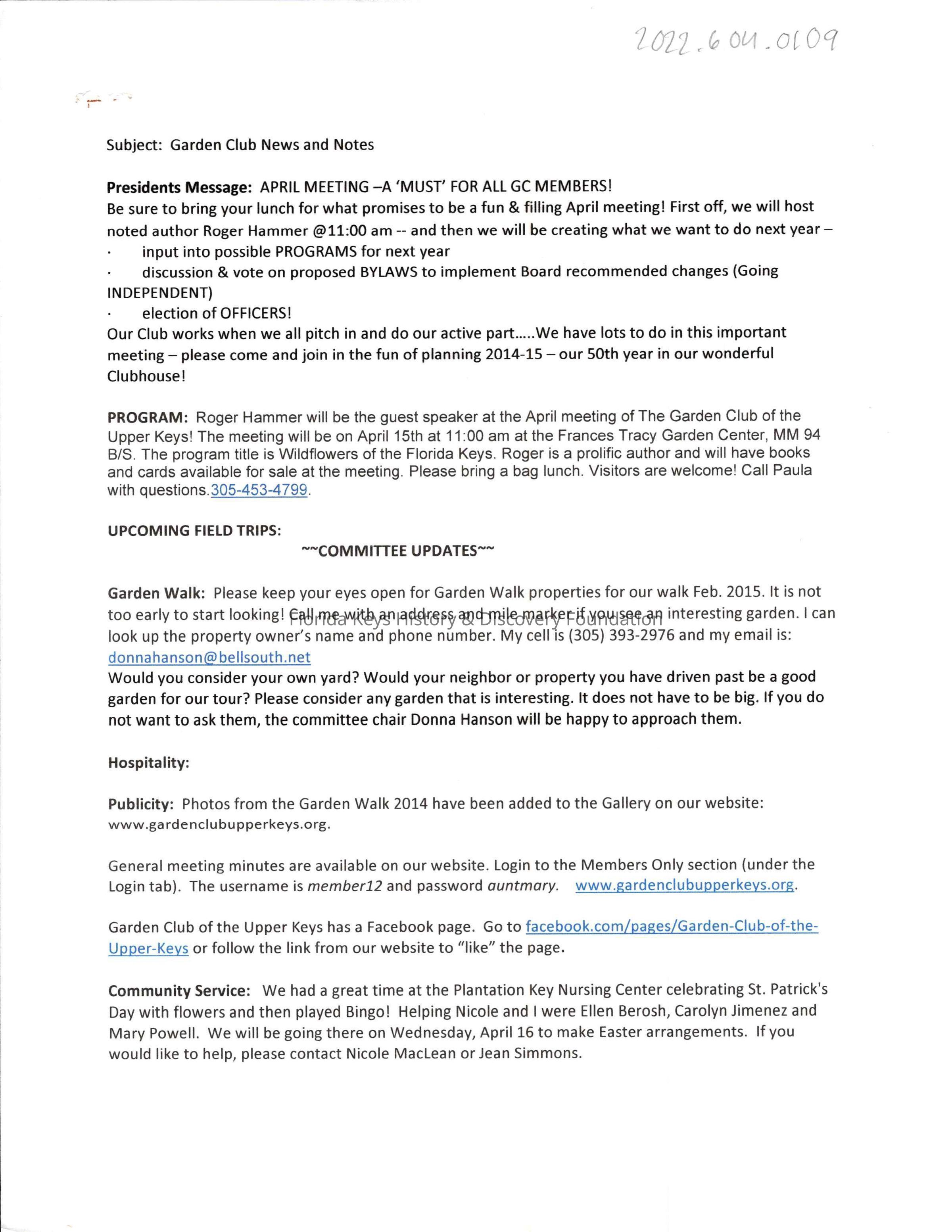 GCUK President's Message 2014Entry/Object ID