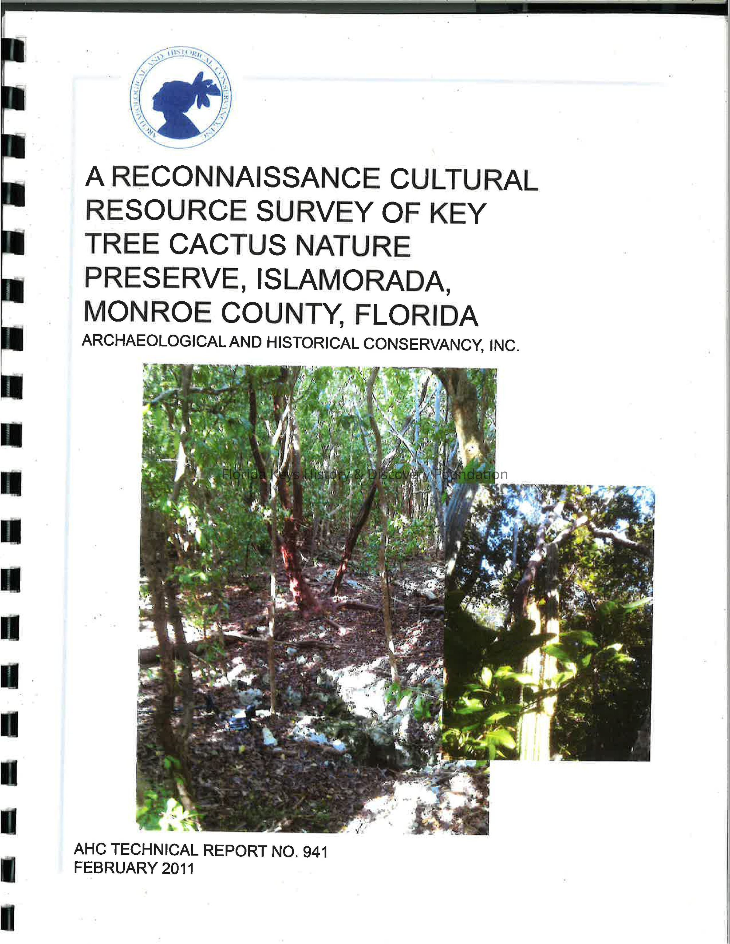 A Reconnaissance Cultural Resource Survey of Key Tree Cactus Nature Preserve, Islamorada, Monroe County, FloridaEntry/Object ID
