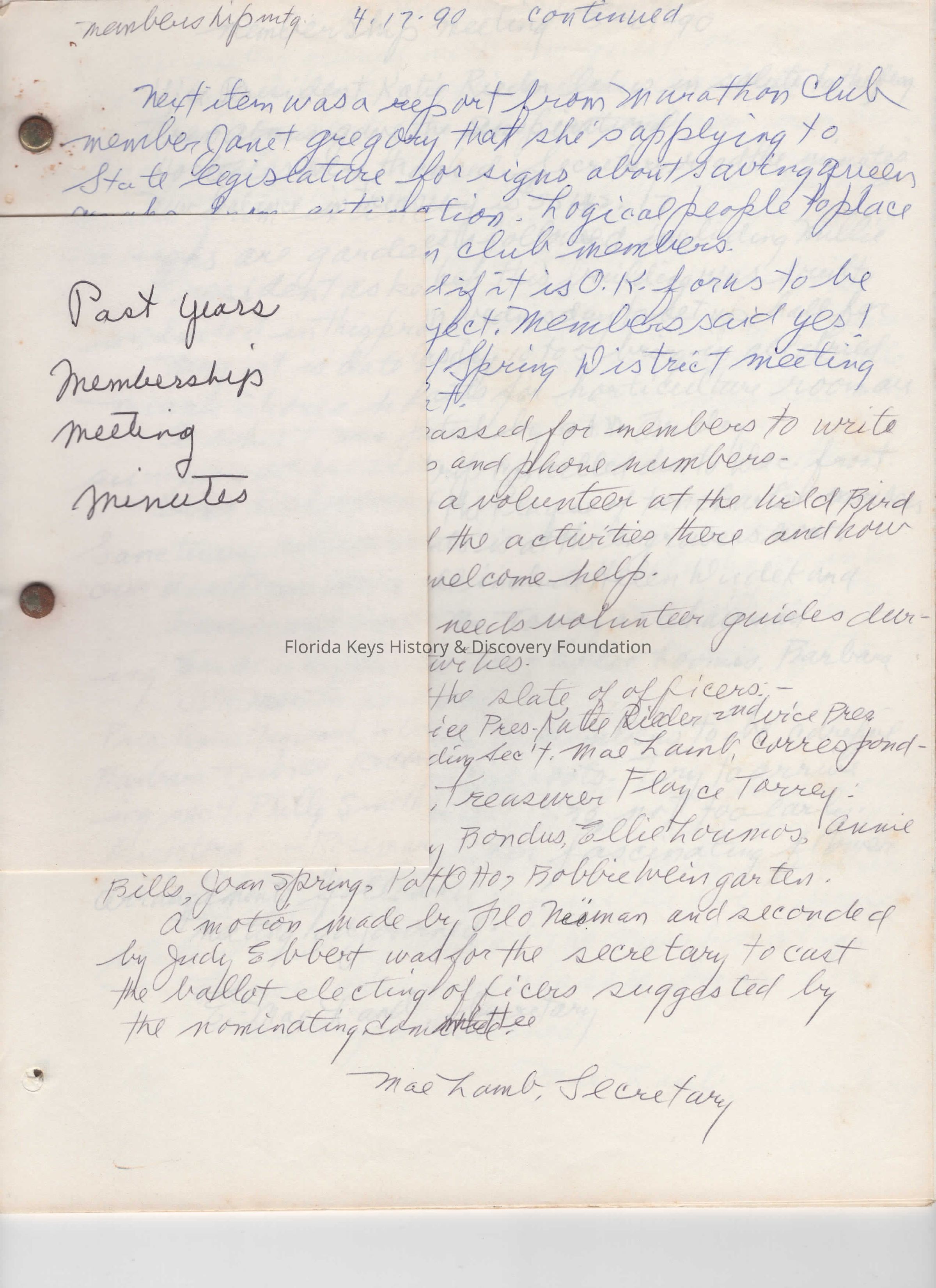 This is a collection of handwritten membership meeting minutes from 1990Collection