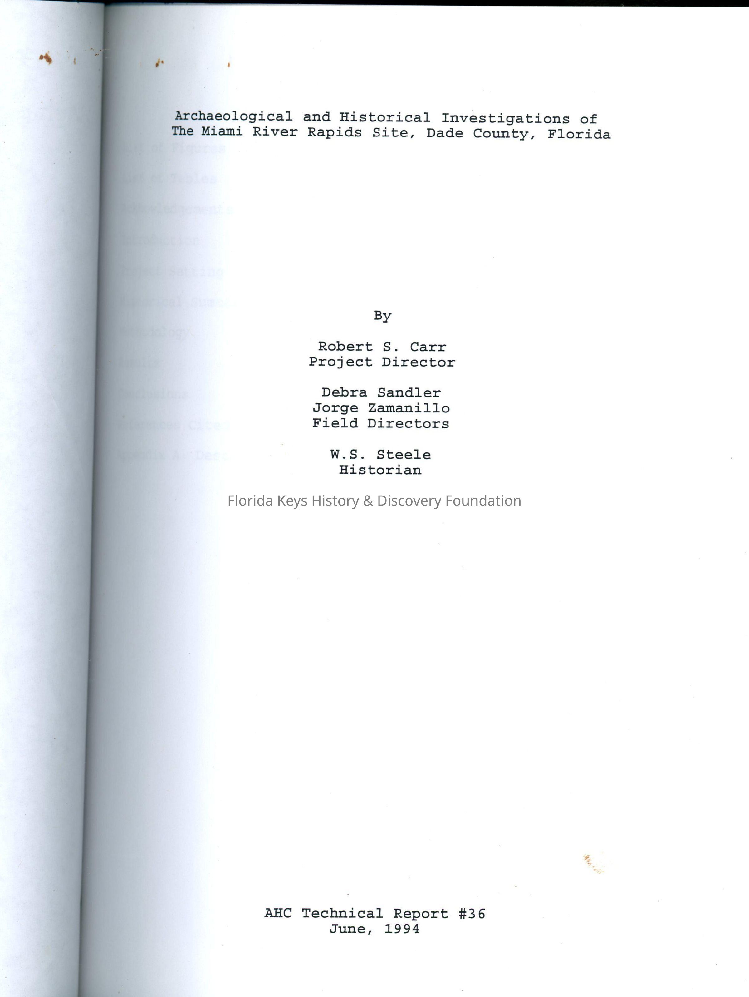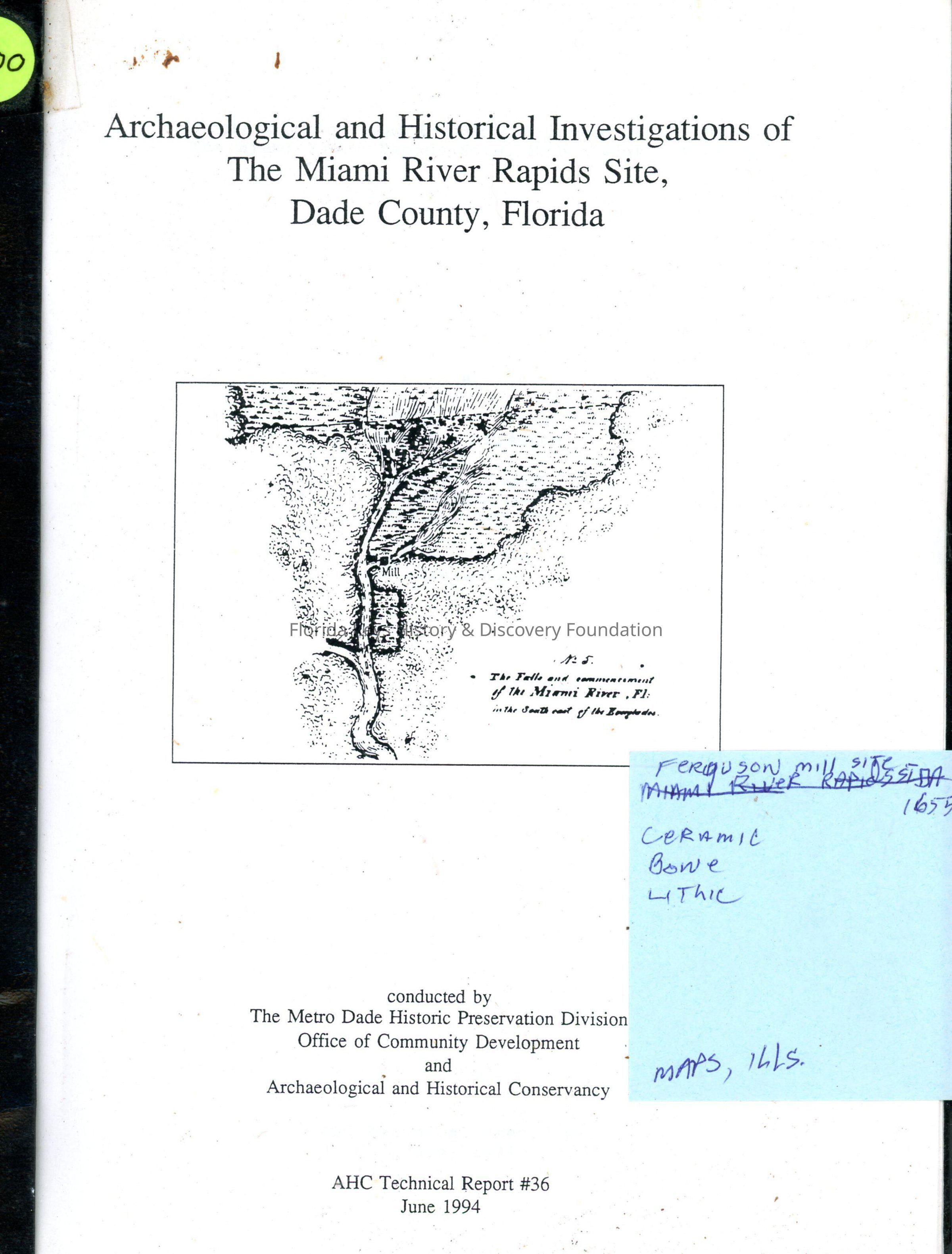 Archaeological and Historical Conservancy, Archaeological Sites, AHC Technical Report, Miami-Dade County, Dade CountySecondary Title