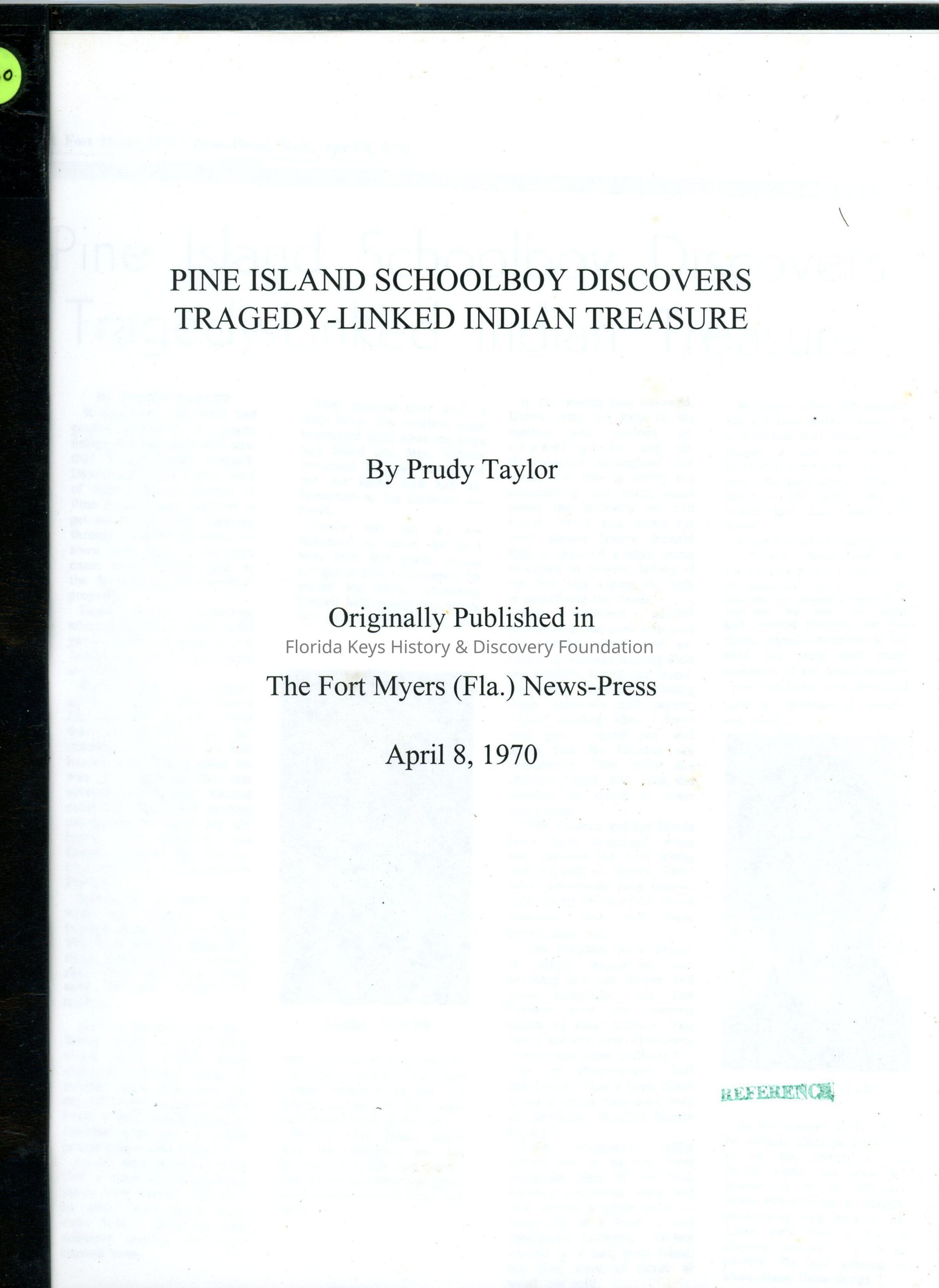 Pine Island Schoolboy Discovers Tragedy-Linked Indian TreasureEntry/Object ID