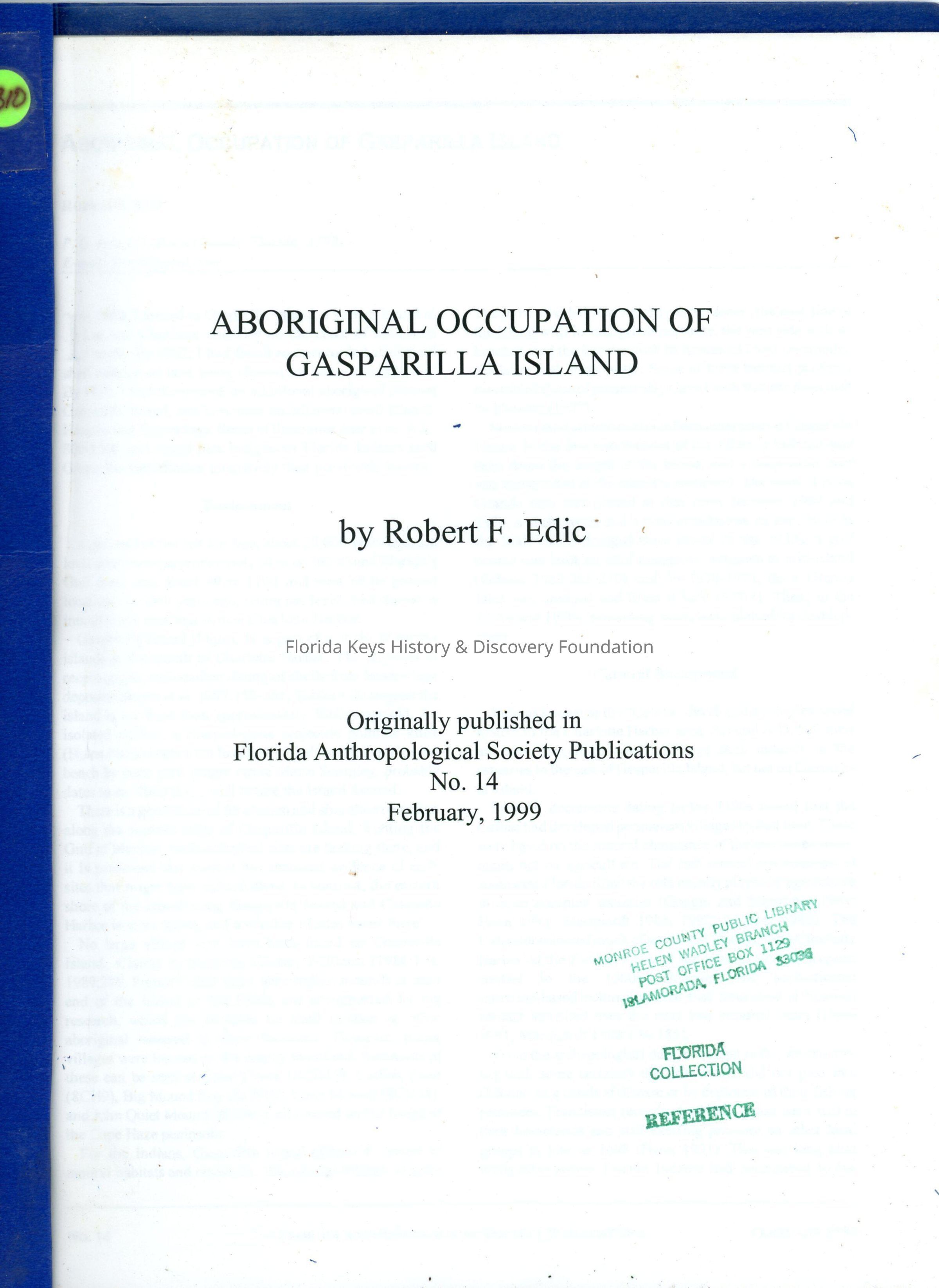 Aboriginal Occupation of Gasparilla IslandEntry/Object ID