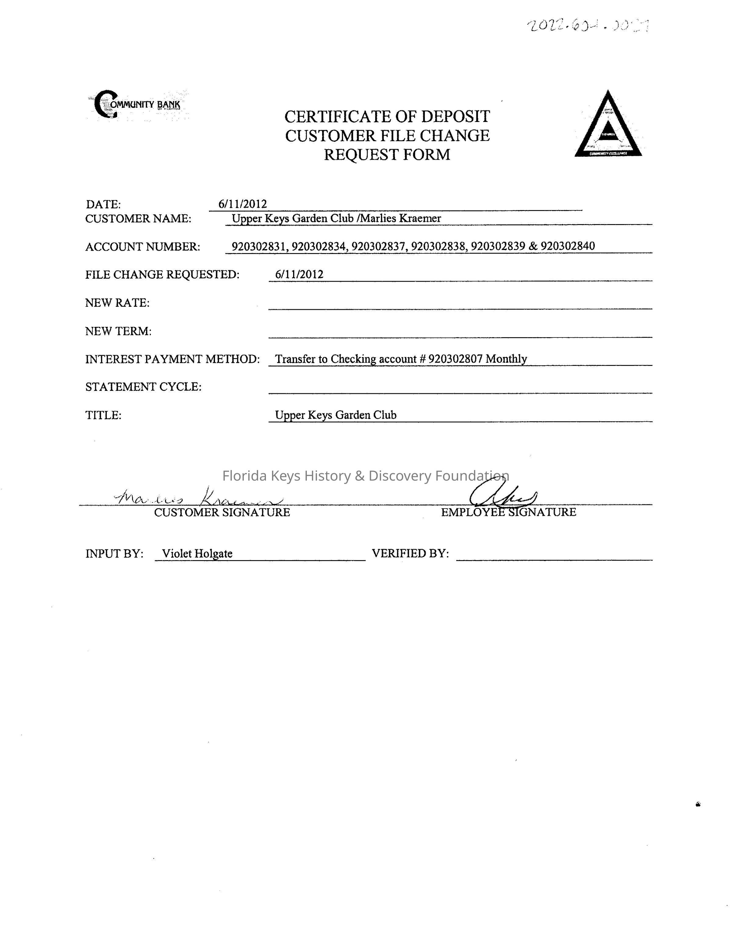 Request form for GCUK certificate of deposit file change. Input by Violet Holgate.