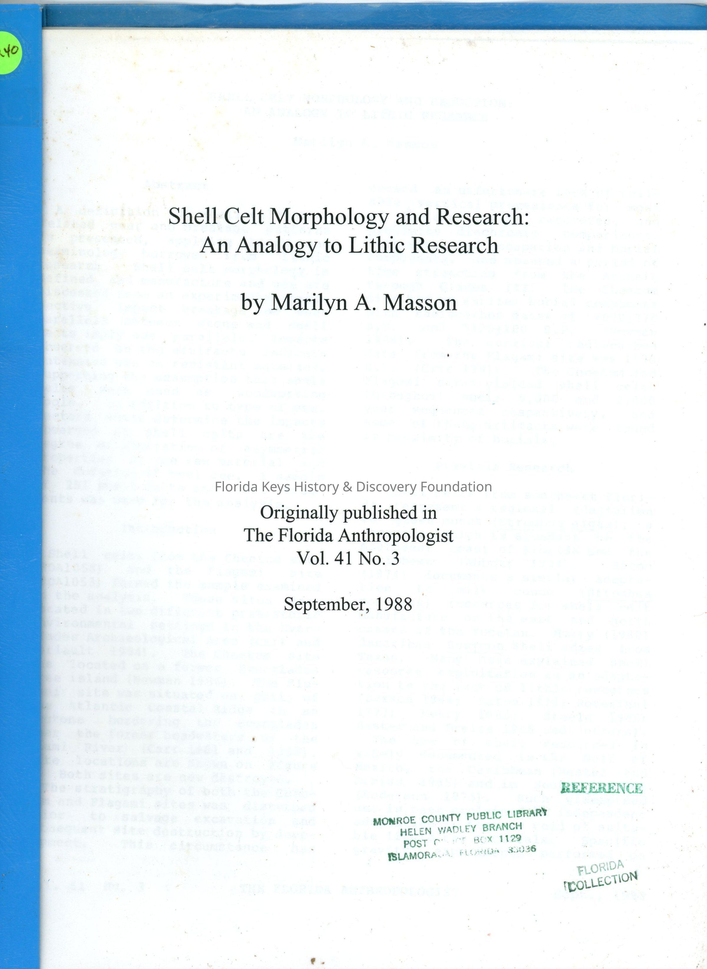 Shell Celt Morphology and Research: An Analogy to Lithic ResearchEntry/Object ID