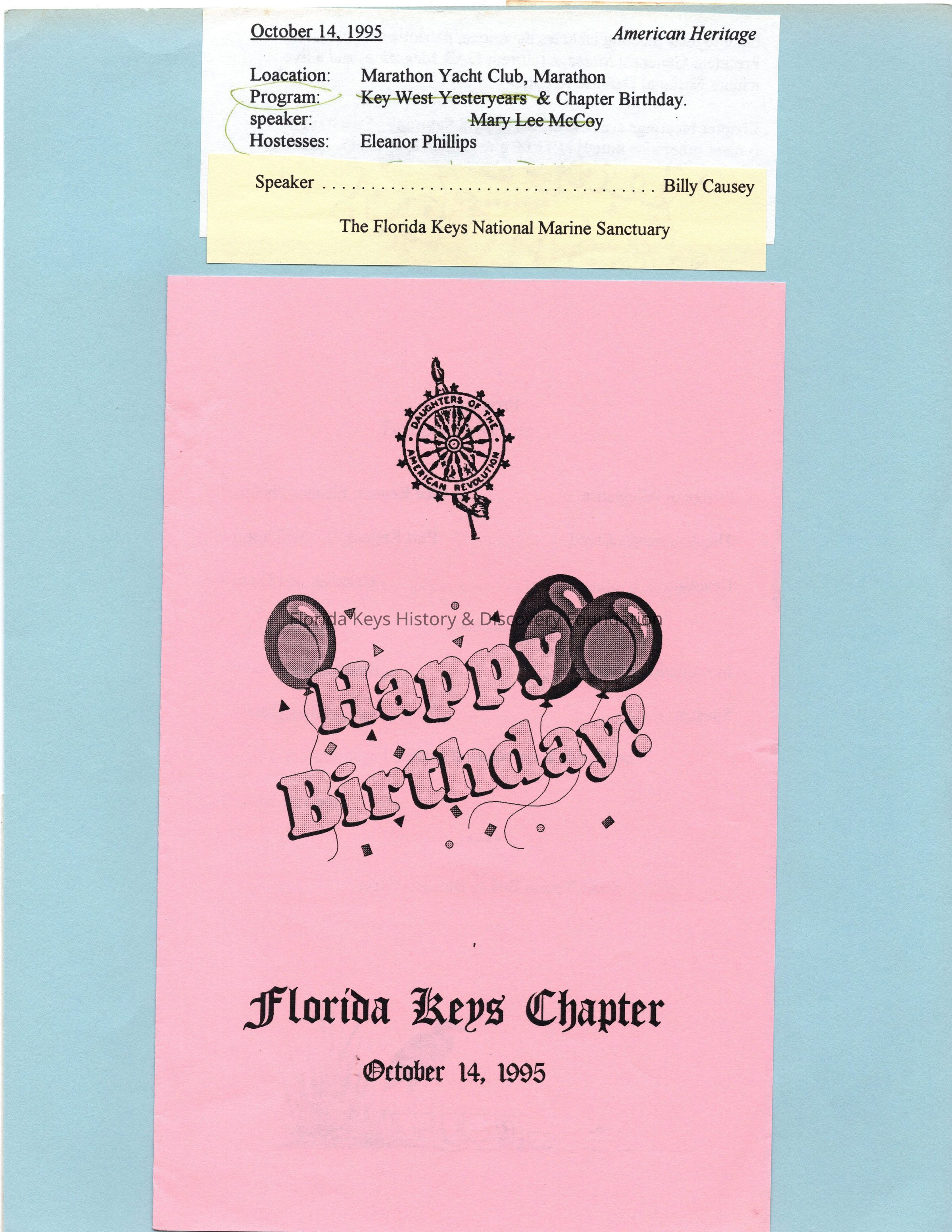 Happy Birthday Florida Keys DAR Chapter & November Meeting, 1995Entry/Object ID