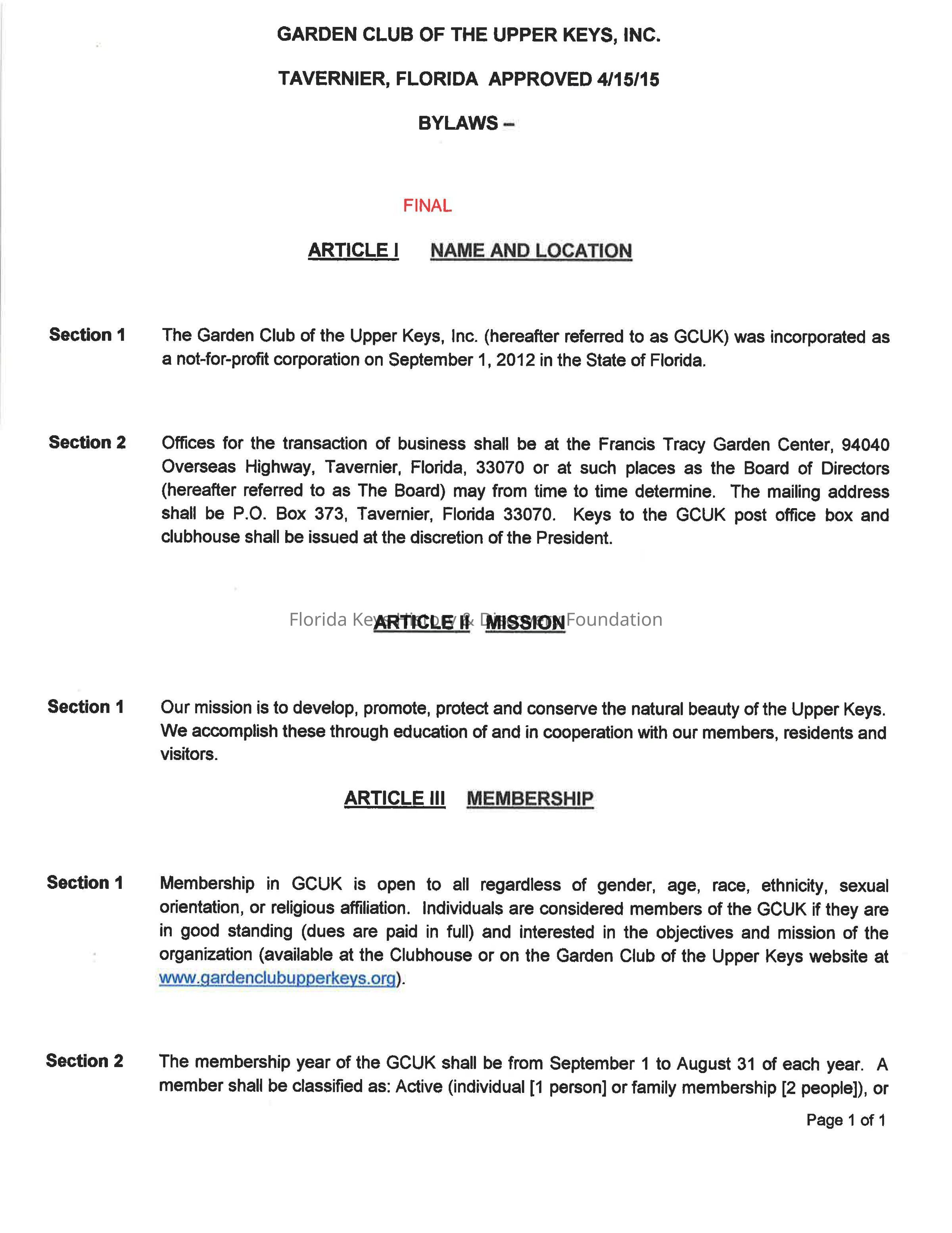 GCUK's bylaws from April 2015, marked as the "Final" version.