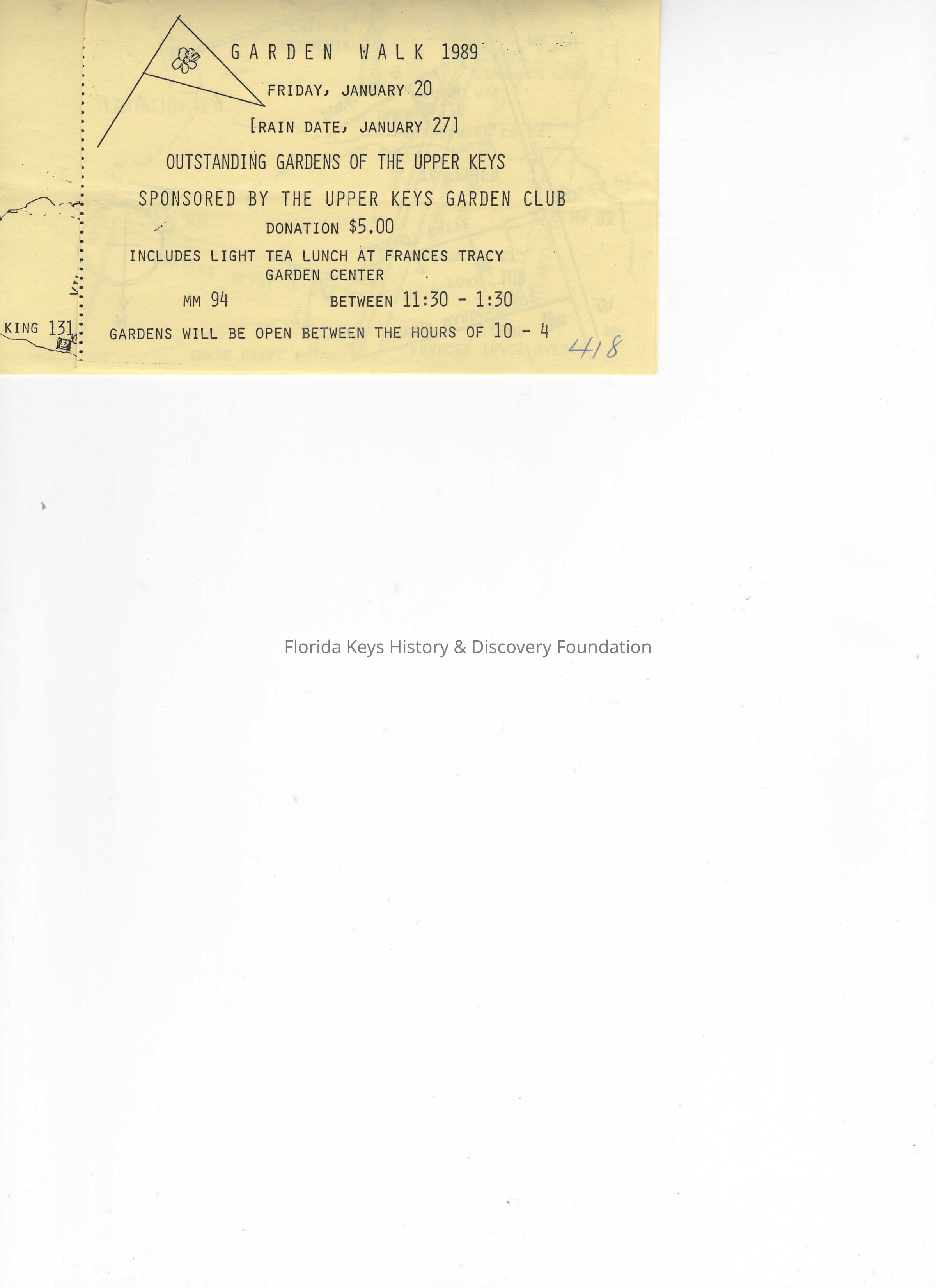 1980s, 1989, GCUK, Garden Walk, Tickets, Lunch ticket, Donation, Francis Tracy Garden Center, TavernierContext