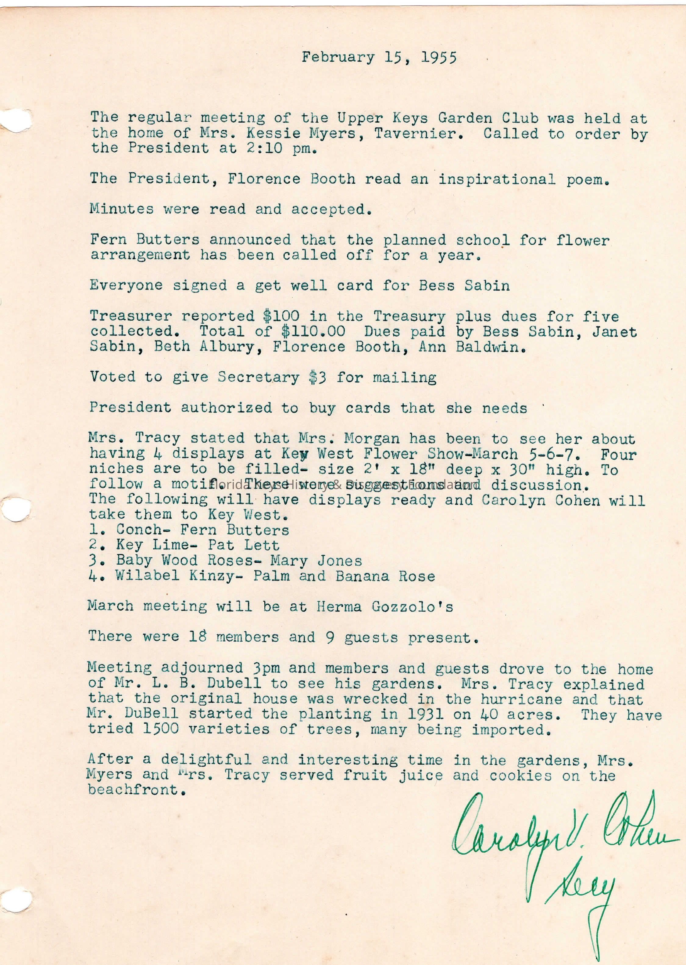 Kessie Myers, Fern Butters, Bess Sabin, Janet Sabin, Beth Albury, Florence Booth, Anne Baldwin, Frances Tracy, Teresa Morgan, Mary Jones, Carolyn Cohen, Carolyn V. Cohen, Patricia Lett, Willabel Kinzy, Herma Gazzola, Garden Club of the Upper KeysCreated By