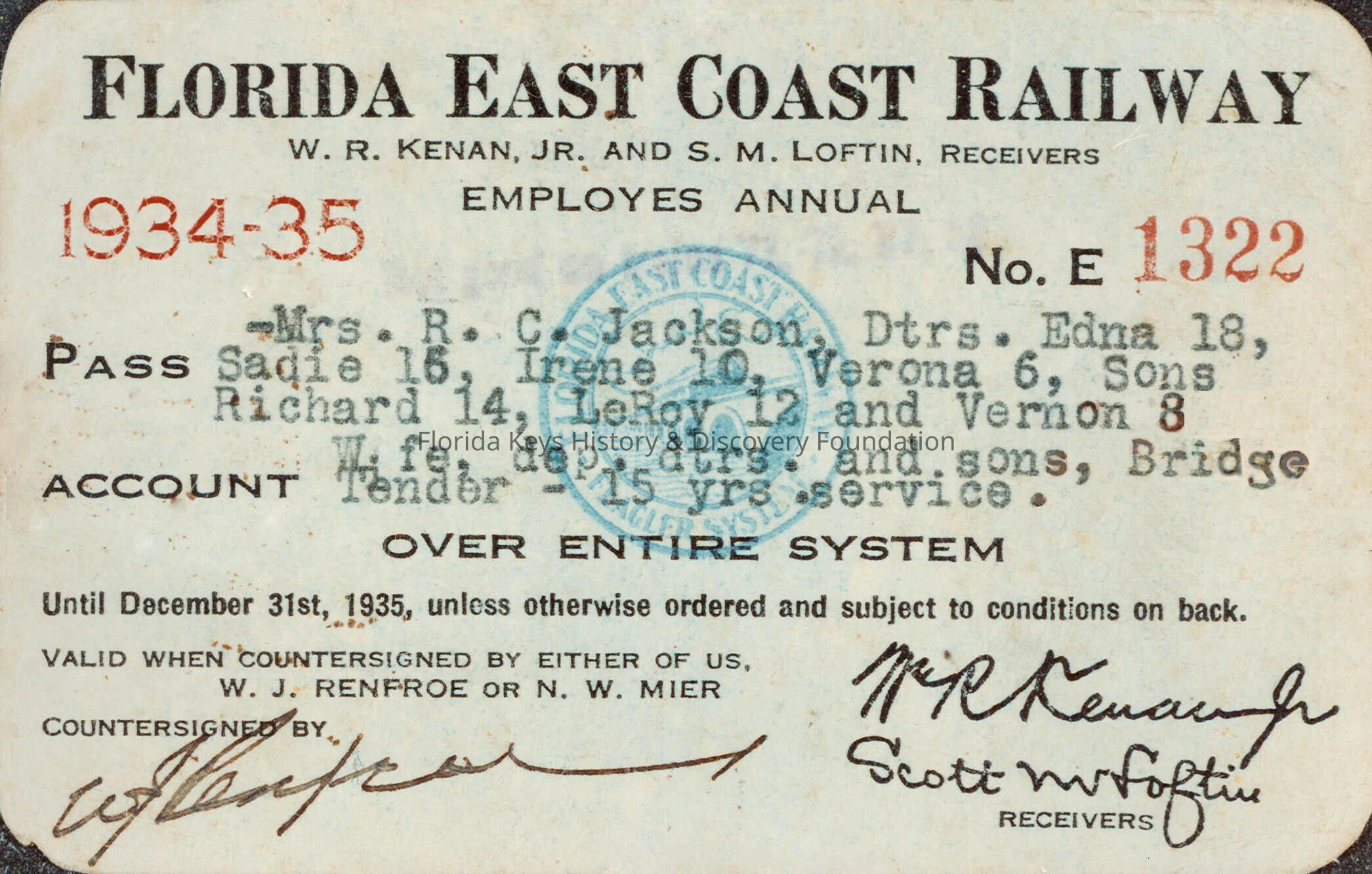 Railroad Pass for Mrs. R.C. Jackson and children 1934-1935Collection