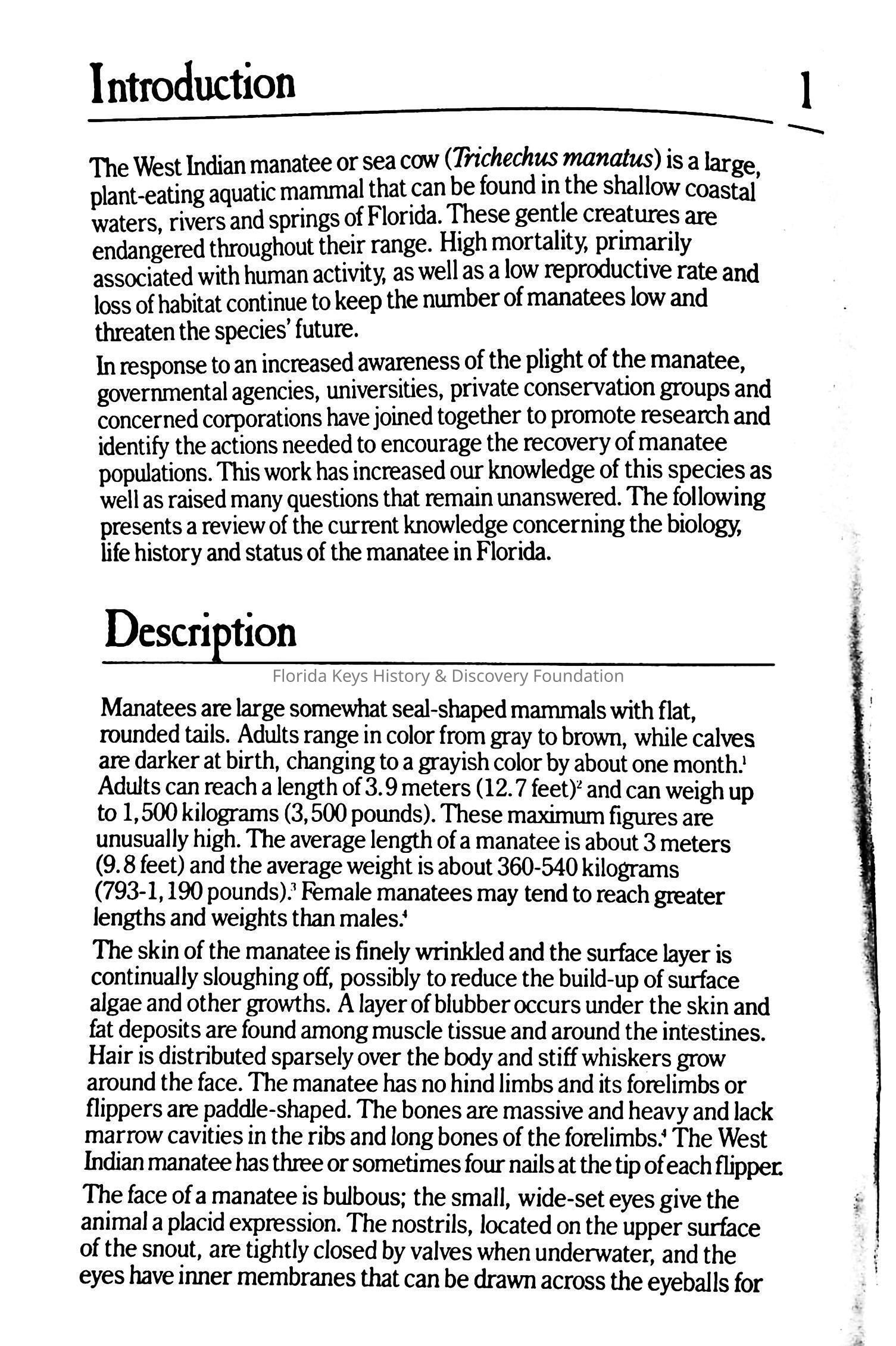 The West Indian Manatee In FloridaEntry/Object ID