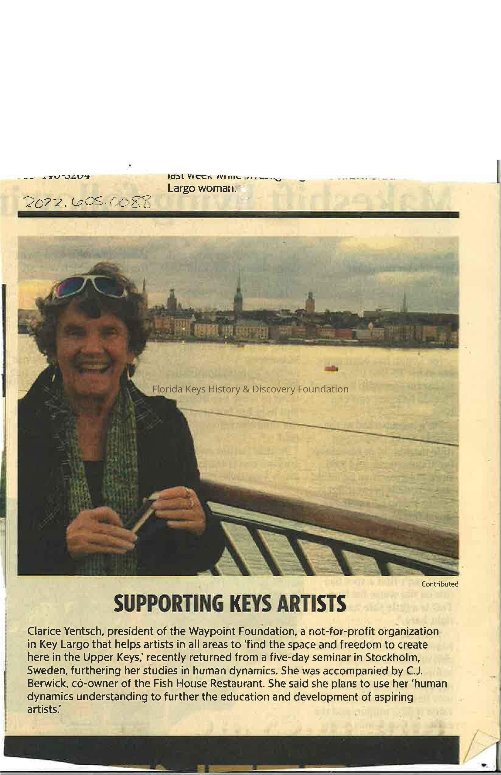 An newspaper clipping entitled "Supporting Keys Artists," from an unknown date and newspaper, potentially Keys Weekly ca. 2010s.Collection