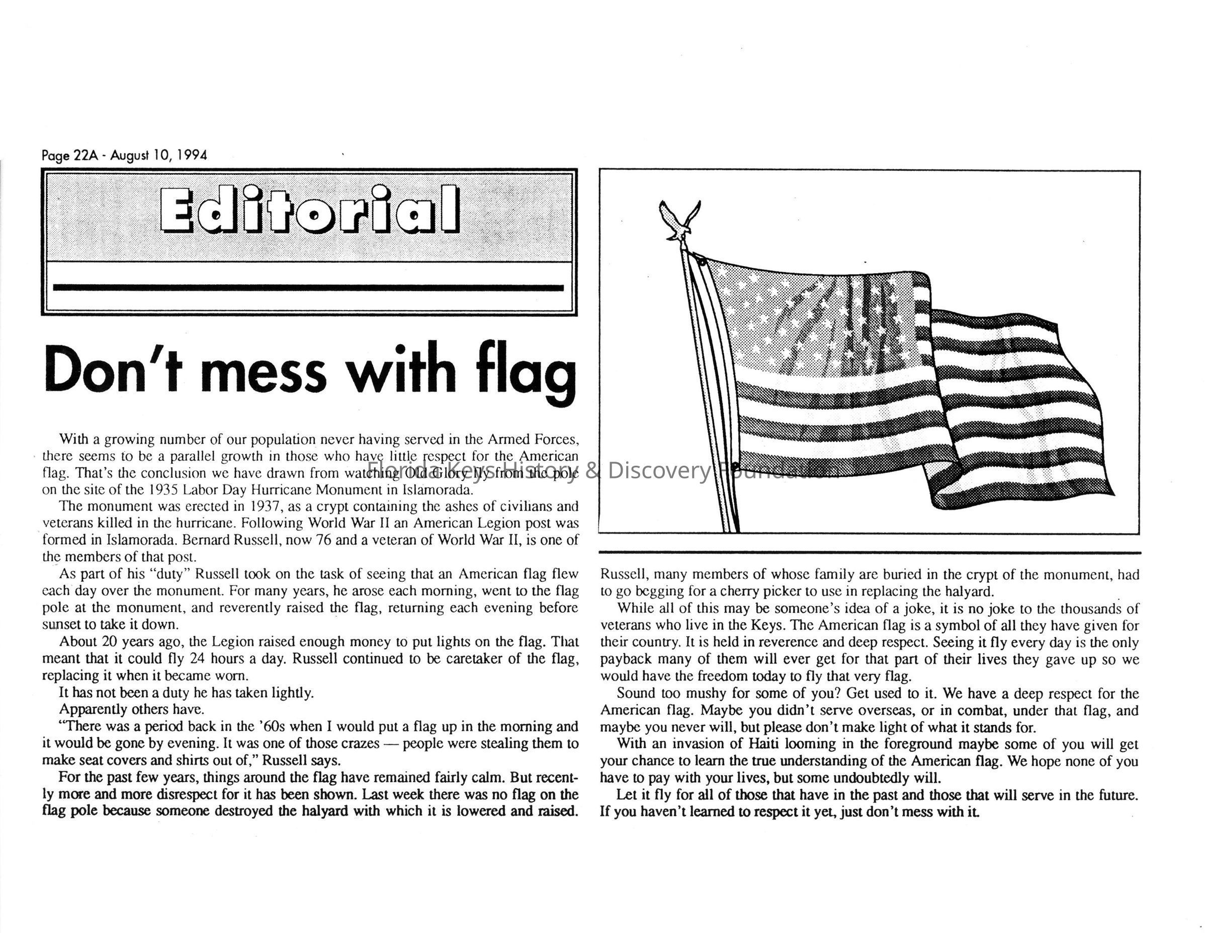 "Don't Mess with Flag" Editorial - August 10, 1994Entry/Object ID