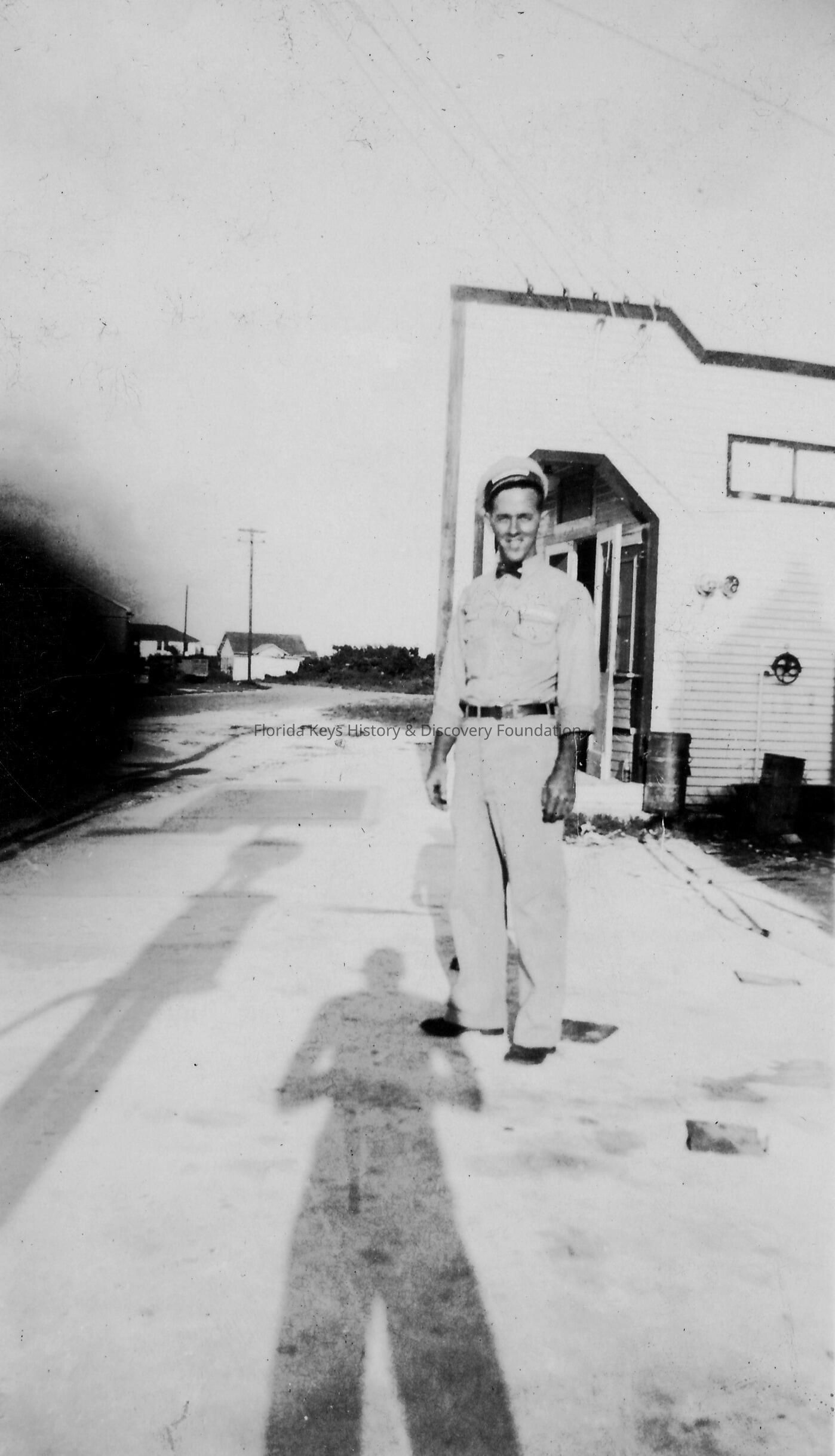 Louis Pellicier in front of gas station, TavernierEntry/Object ID