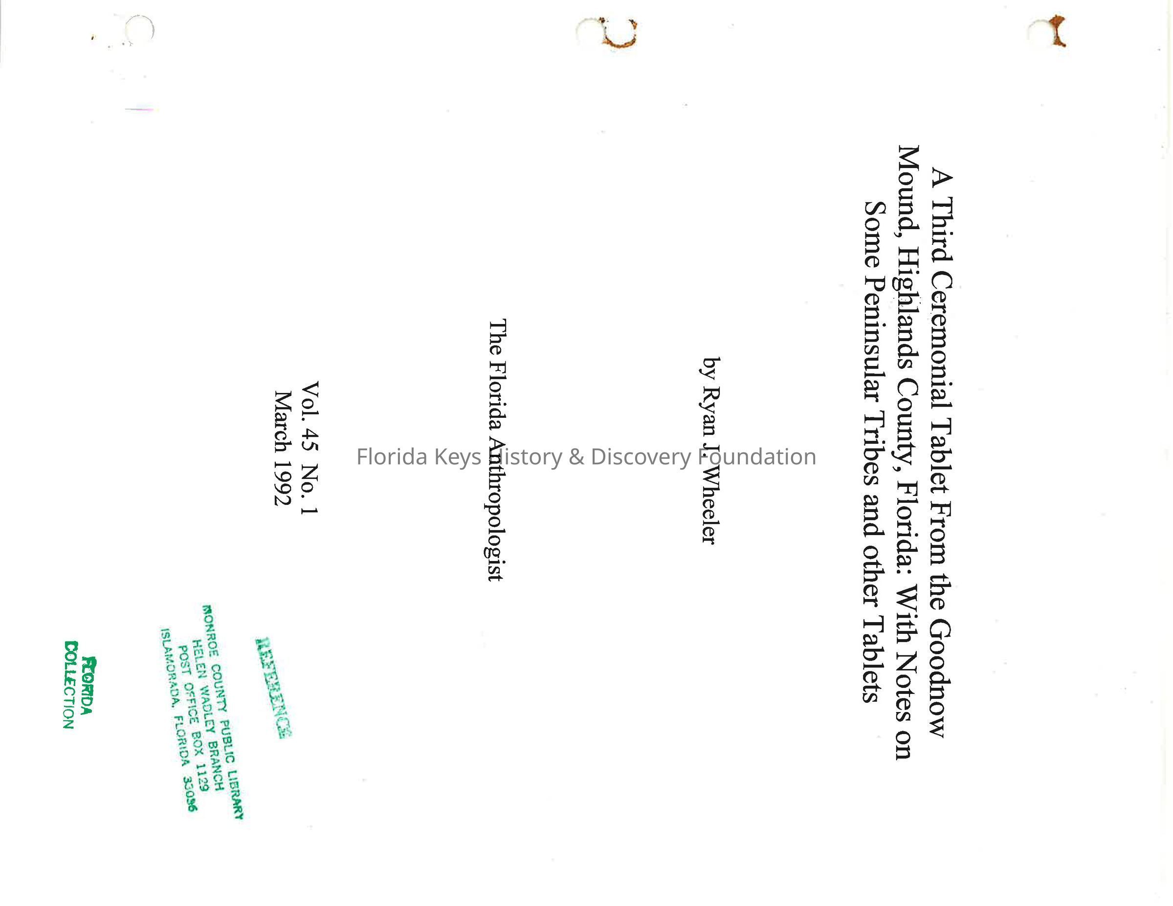 A Third Ceremonial Tablet From the Goodnow Mound, Highland County, Florida: With Notes on Some Peninsular Tribes and other TabletsEntry/Object ID