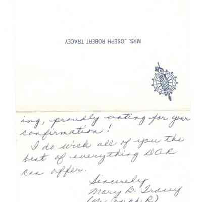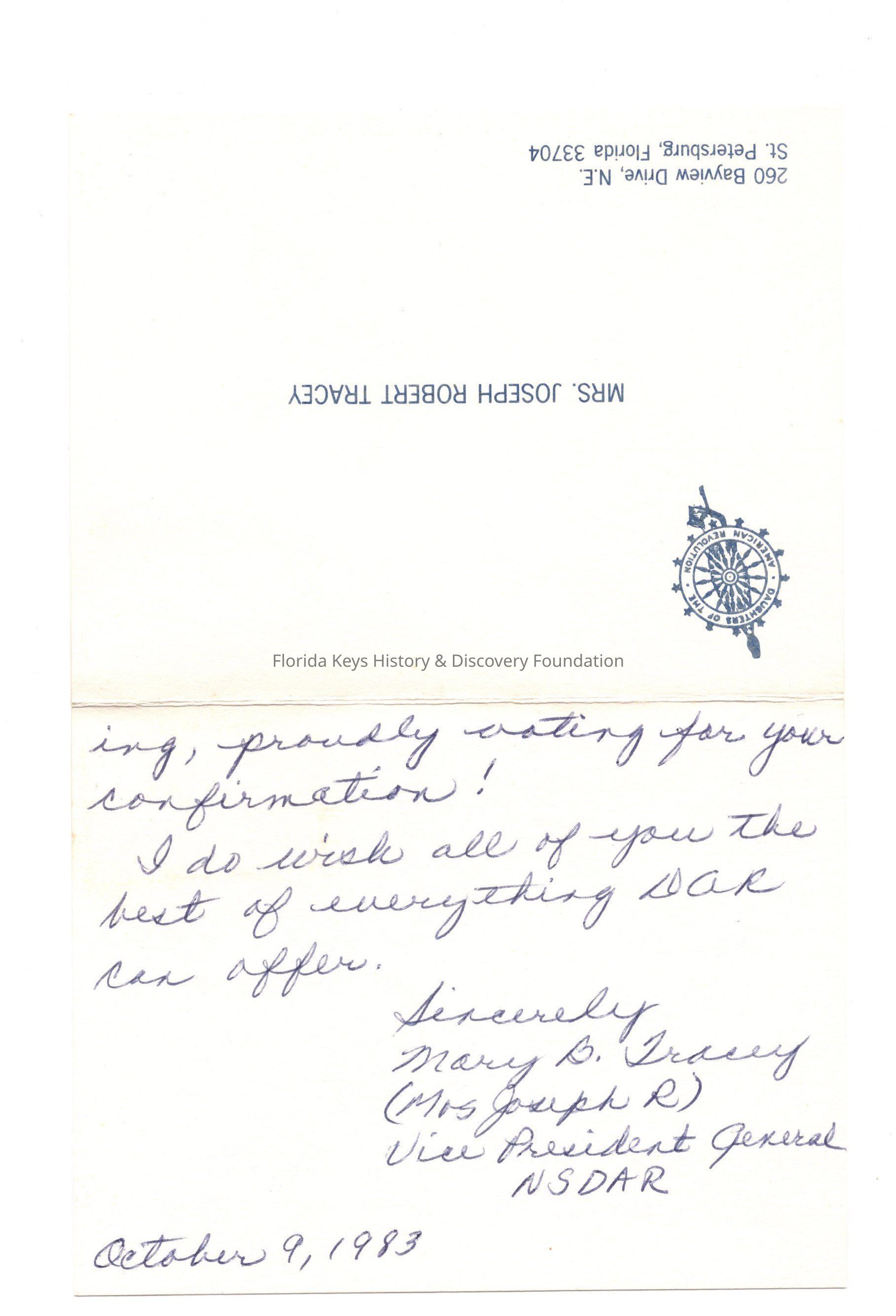Letter to Katherine Wilkinson from Mary Robert Tracy, 1983Entry/Object ID