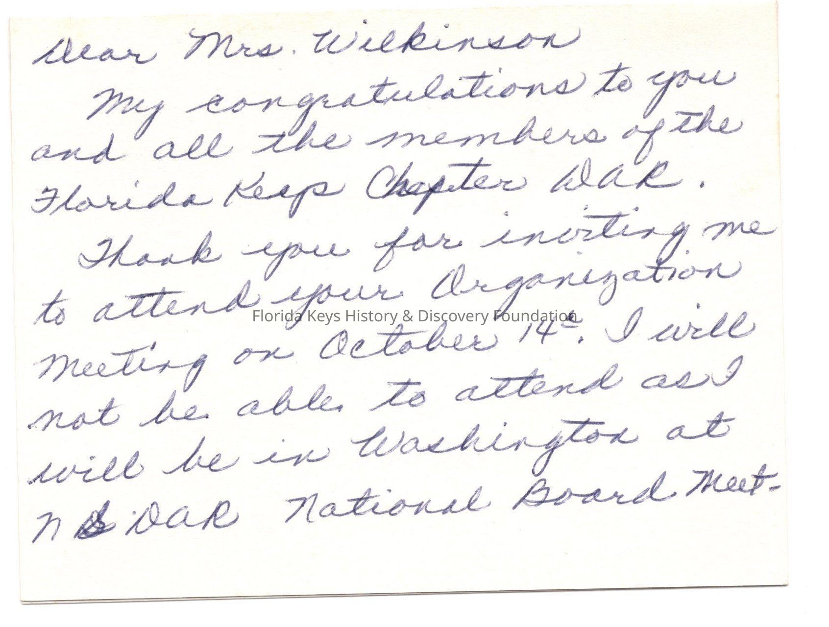 Mary B. Robertson Tracy regretfully tells Katherine Wilkinson that she can not make the October 14th meeting.Collection