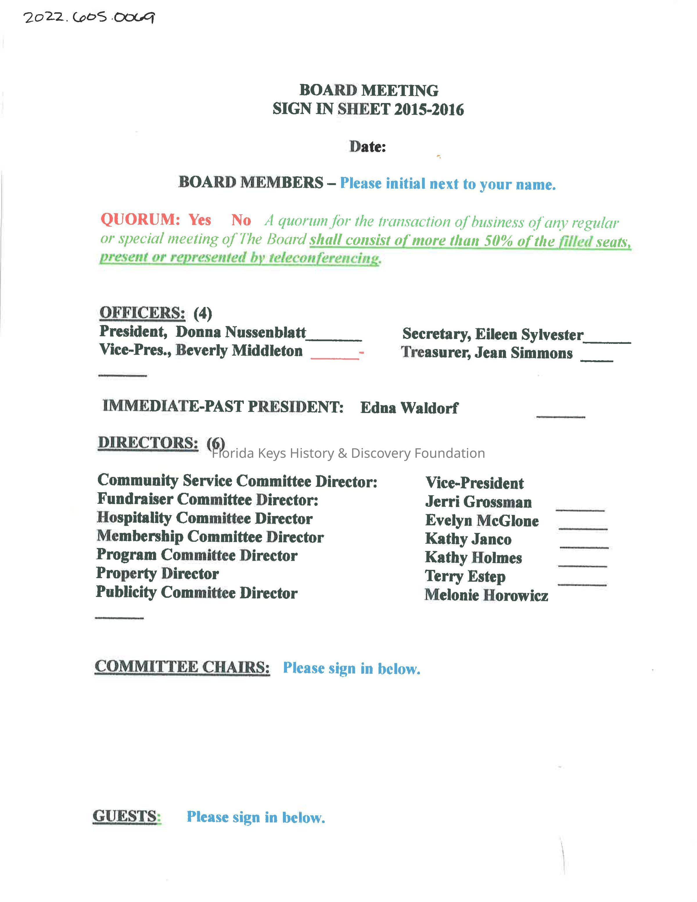 Unused Board Meeting Sign in Sheets from the 2015-2016 year