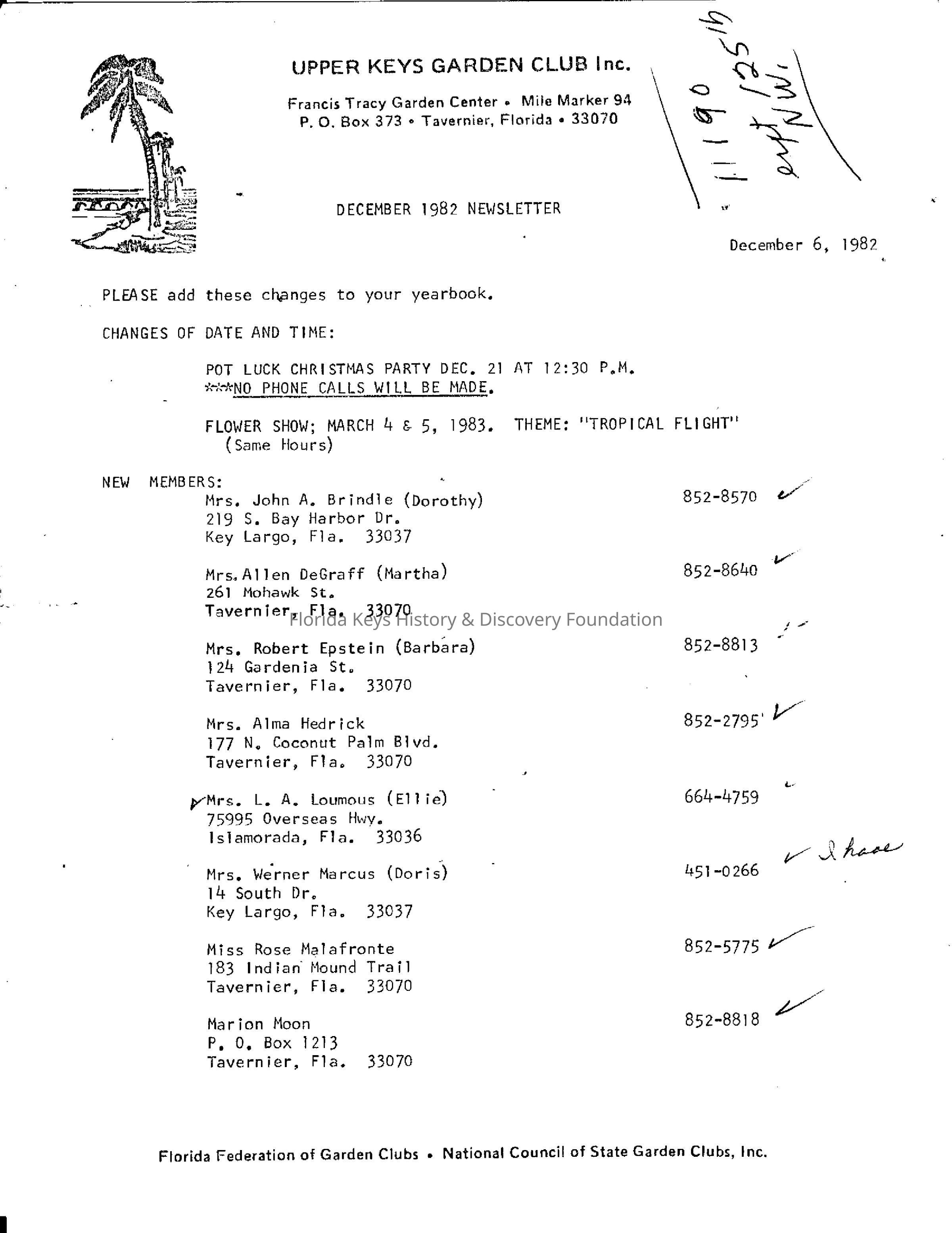 This newsletter was sent out to members in 1982 to add to their yearbooks. It includes new members and events as well as updates on projects.Collection
